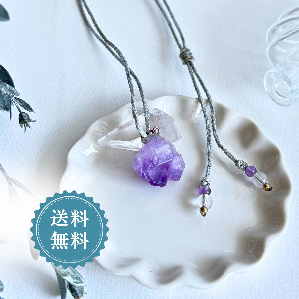 ペンダント ペンダントトップ ネックレス シリウスアメジスト アメジスト 金属アレルギー対応 マクラメ編み 大人かわいい シンプル シルバー紐 天然石 紫石 510711 2月誕生石
