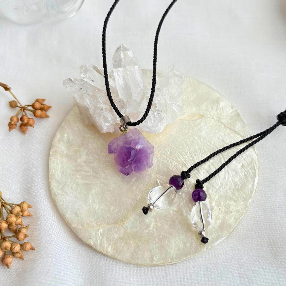 ペンダントトップ ネックレス ペンダント 天然石 シリウスアメジスト 金属アレルギー対応 マクラメ編み 大人可愛い プレゼント 大人カッコいい 紫石 黒紐 511110