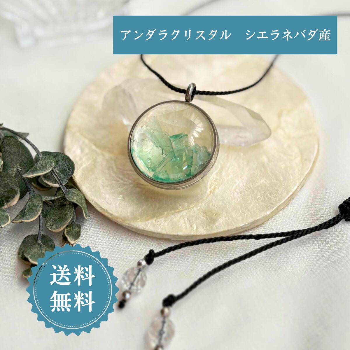 ペンダントトップ ネックレス 天然石 大きめ 金属アレルギー マクラメ 大人かわいい アンダラクリスタル エメラルドシフト 細石 黒紐 501201 レムリア