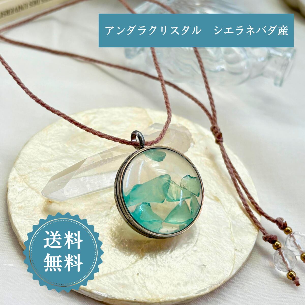 ペンダントトップ ネックレス 天然石 大きめ 金属アレルギー マクラメ 大人かわいい アンダラクリスタル エメラルドシフト シエラネバダ産 さざれ石 ベージュ紐 501202 レムリア