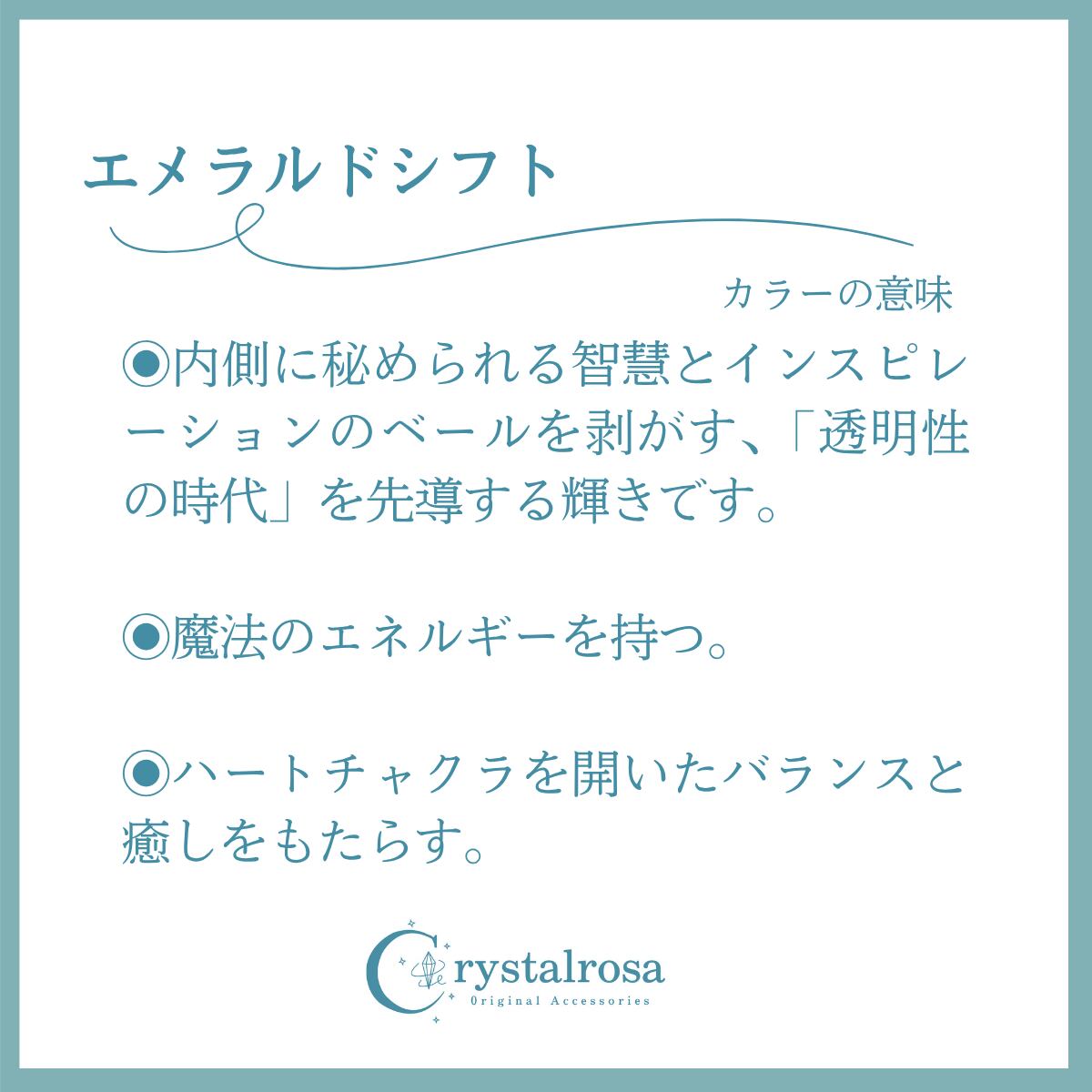 その輝きが心にポジティブなエネルギーと癒しを届けてくれます。また、エメラルドシフトは心の安定を助け、身体と心の調和を促します。