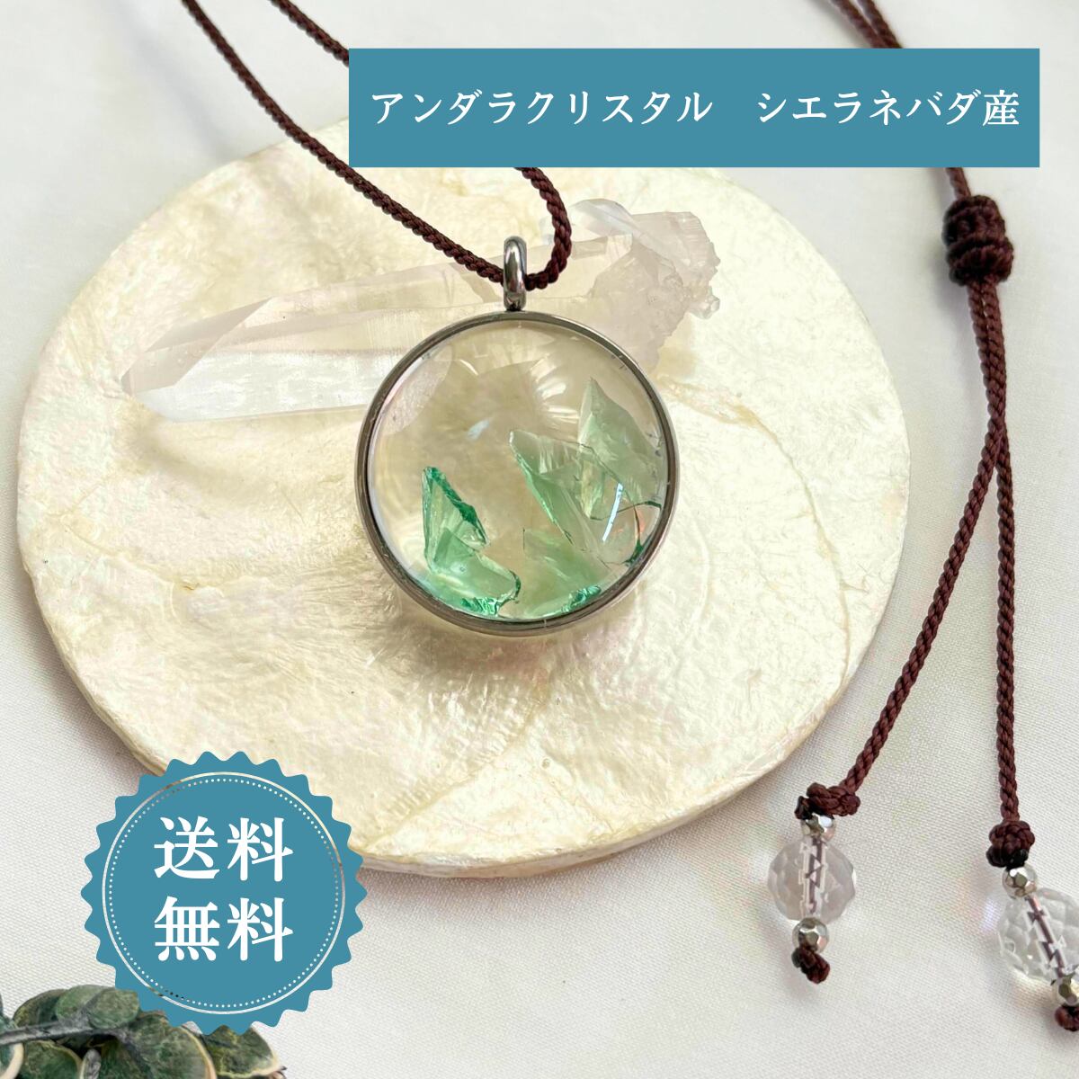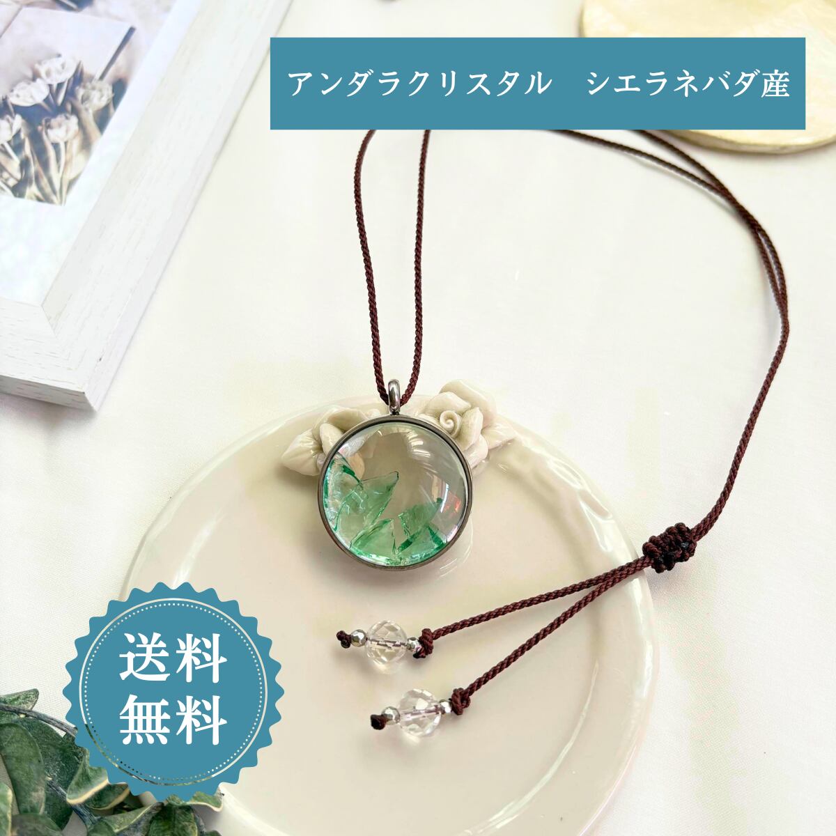 ペンダントトップ ネックレス 天然石 大きめ 金属アレルギー マクラメ 大人かわいい アンダラクリスタル エメラルドシフト シエラネバダ産 さざれ石 茶紐 501203 レムリア