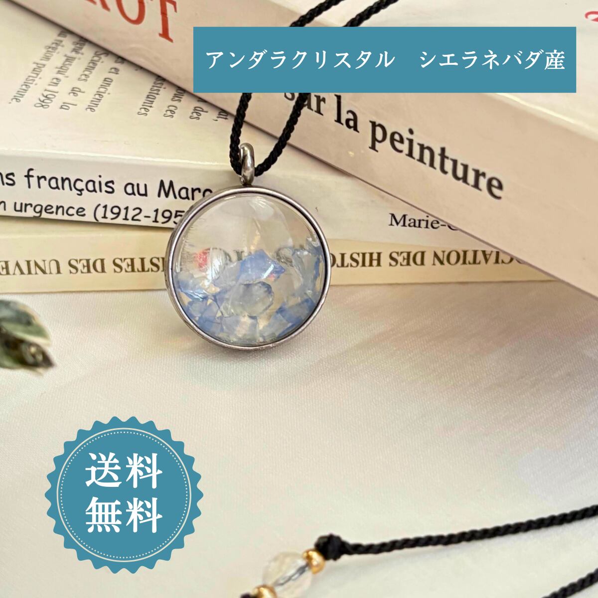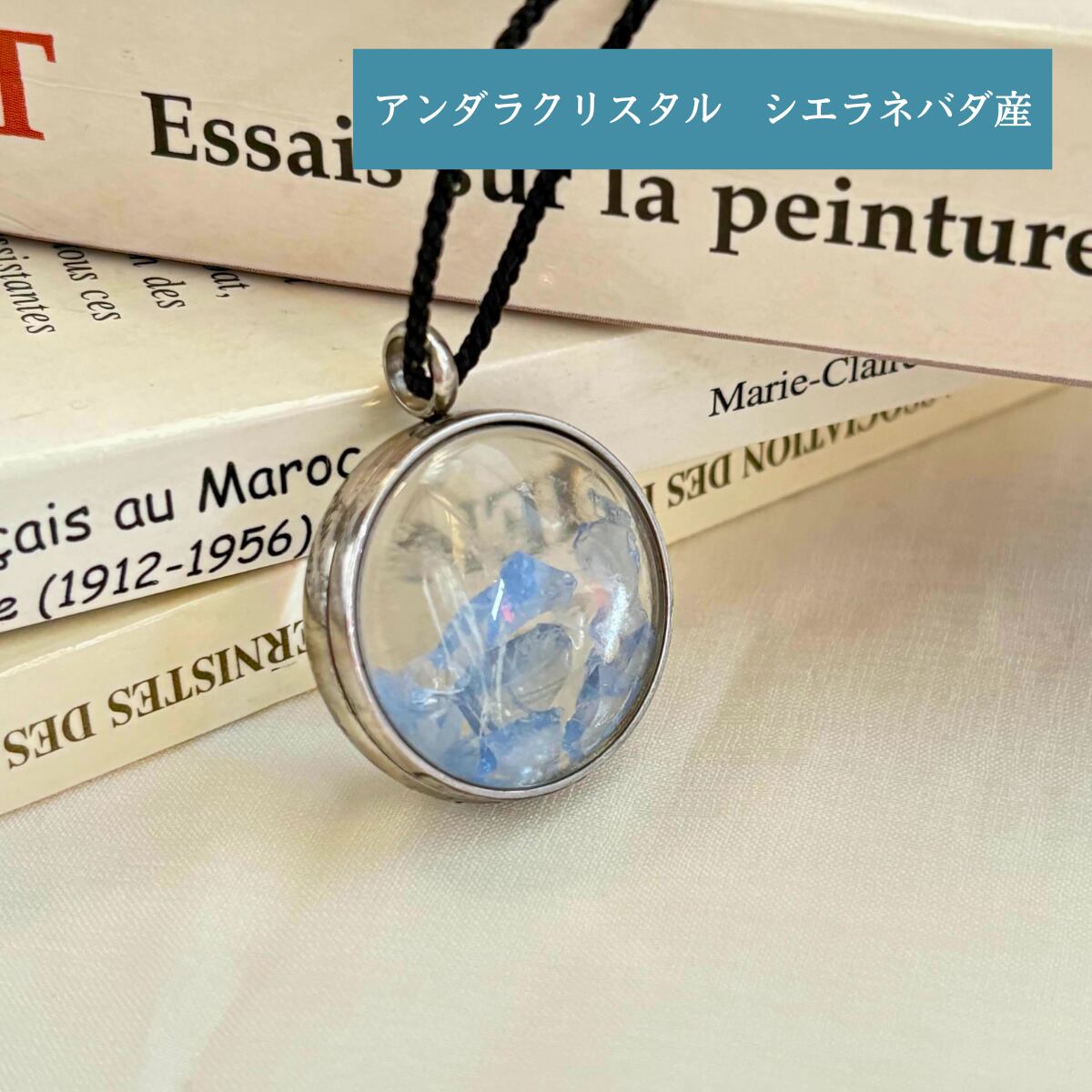 ペンダントトップ ネックレス 天然石 大きめ 金属アレルギー対応 マクラメ編み ロウビキ紐 大人かわいい アンダラクリスタル レディネリー シエラネバダ産 さざれ石 黒紐 青い石 501208