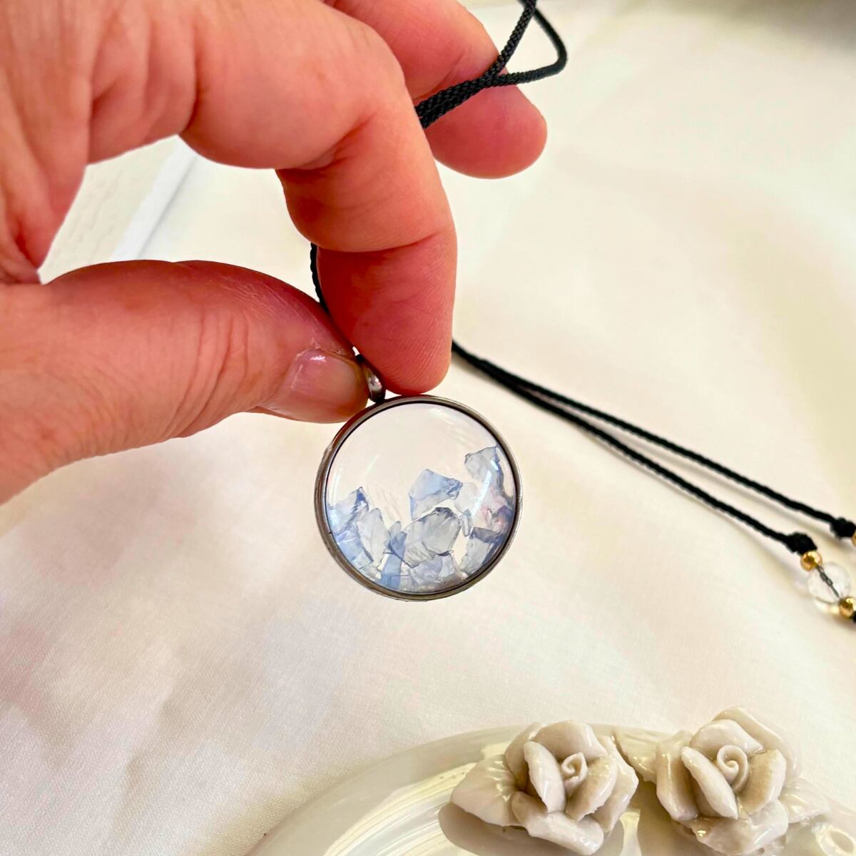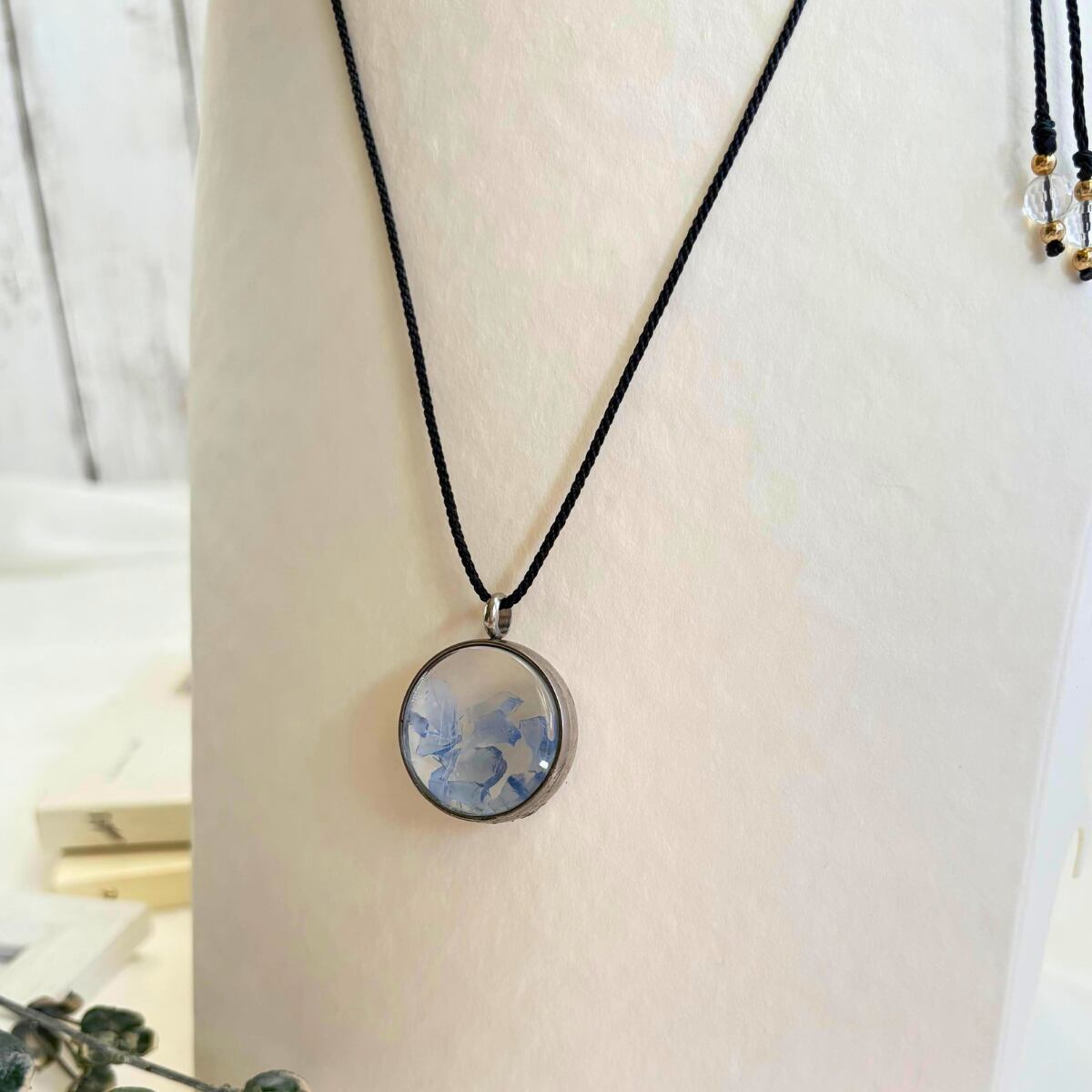 このペンダントの紐部分は金属アレルギー対応。