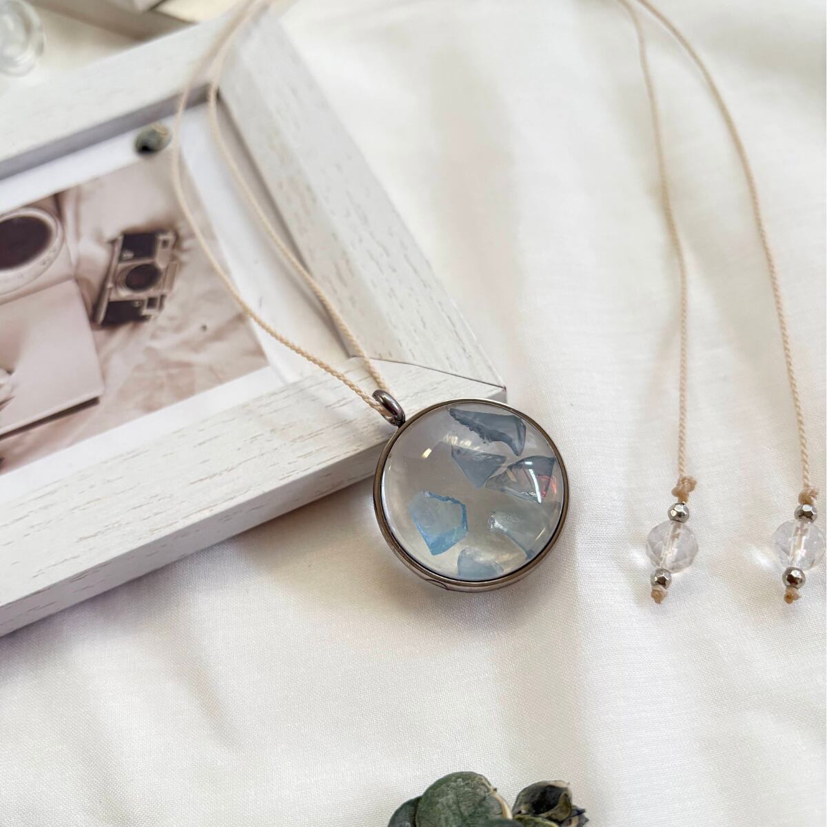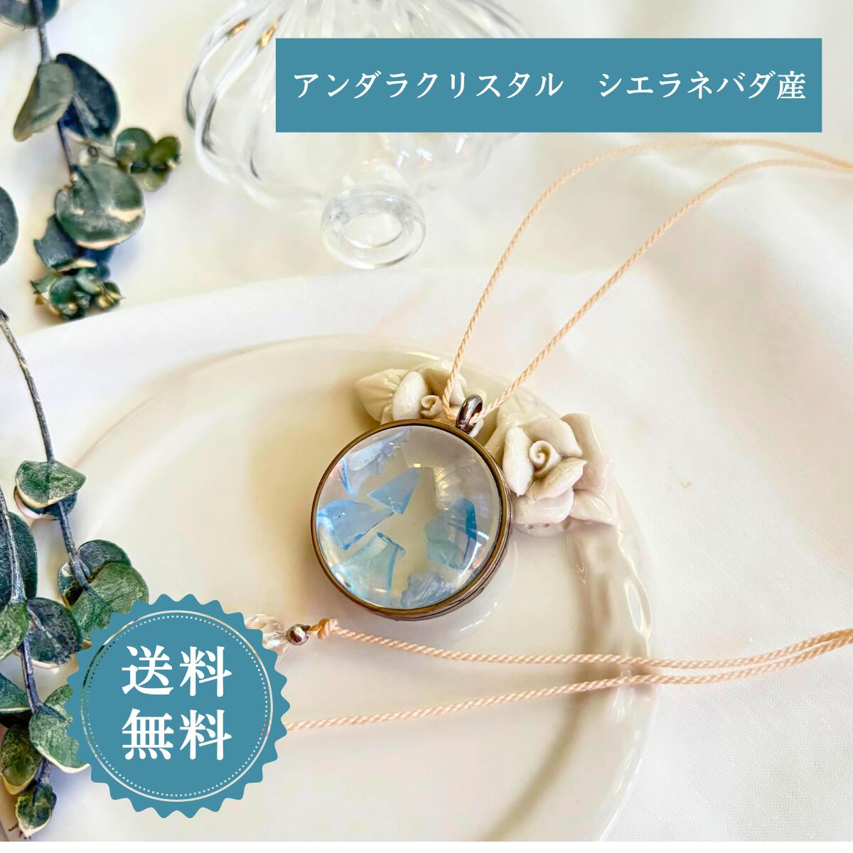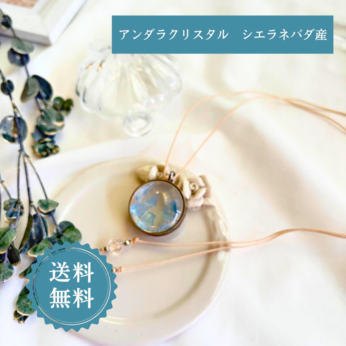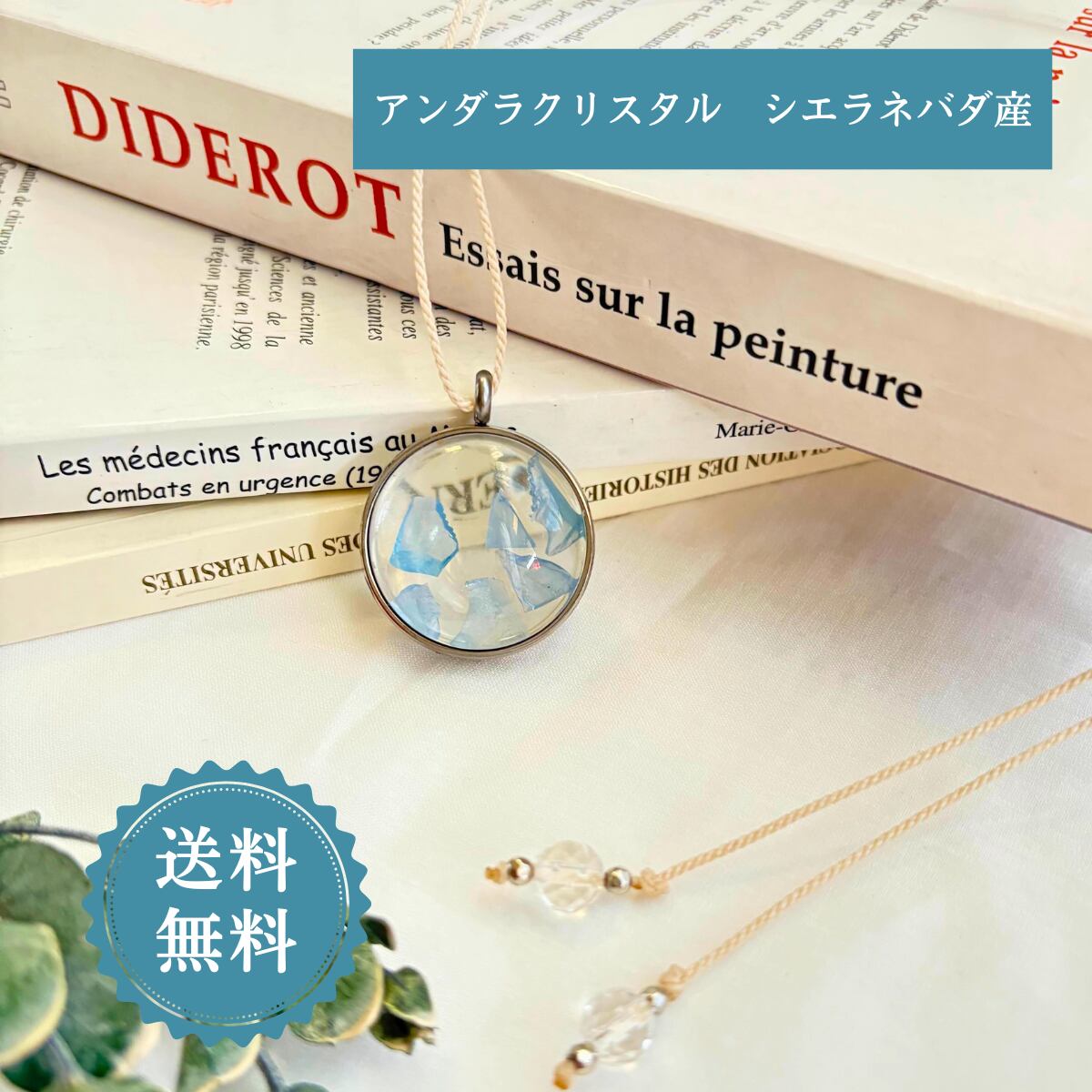 ペンダントトップ ネックレス 天然石 大きめ 金属アレルギー対応 マクラメ編み ロウビキ紐 大人かわいい アンダラクリスタル レディネリー シエラネバダ産 さざれ石 白紐 青い石 501209