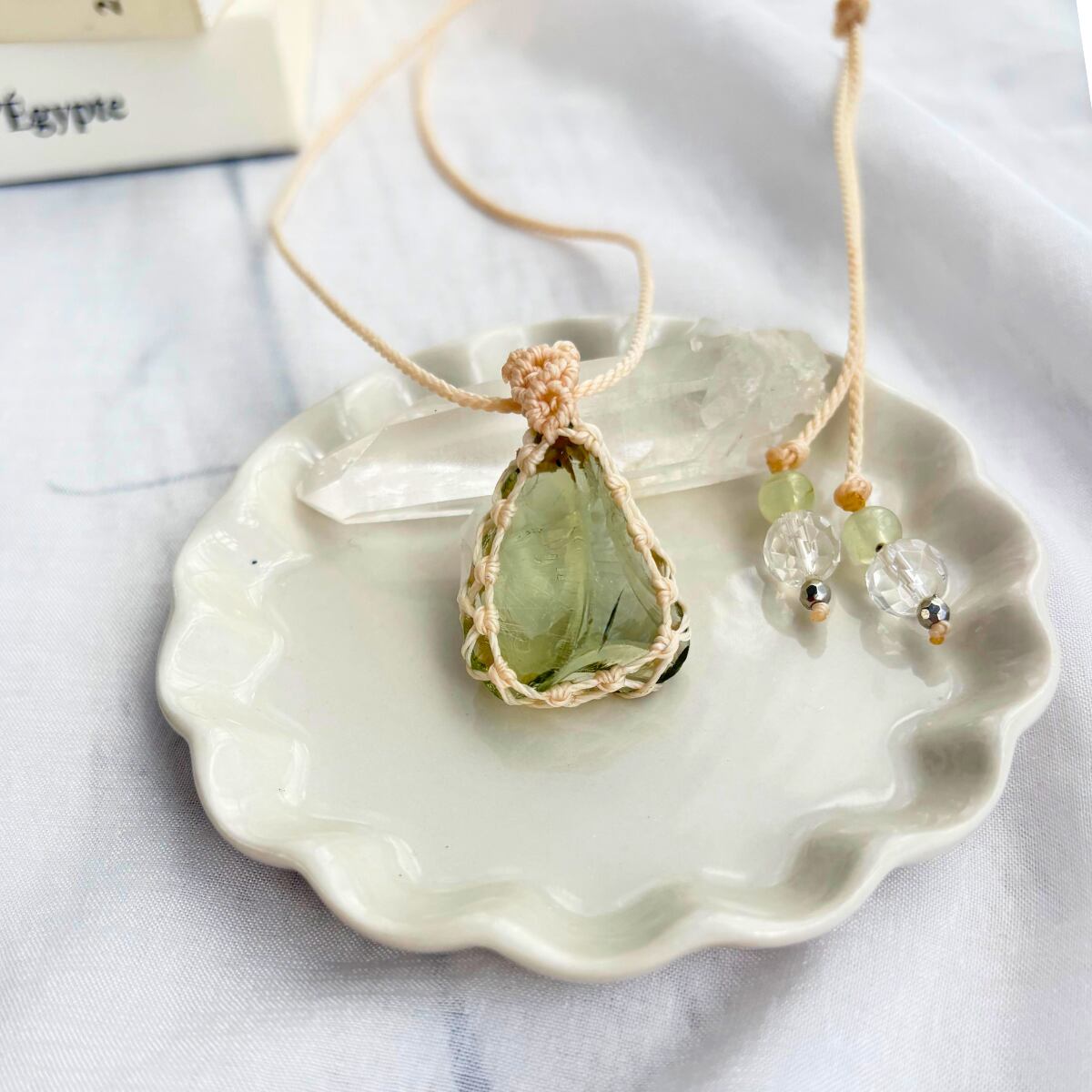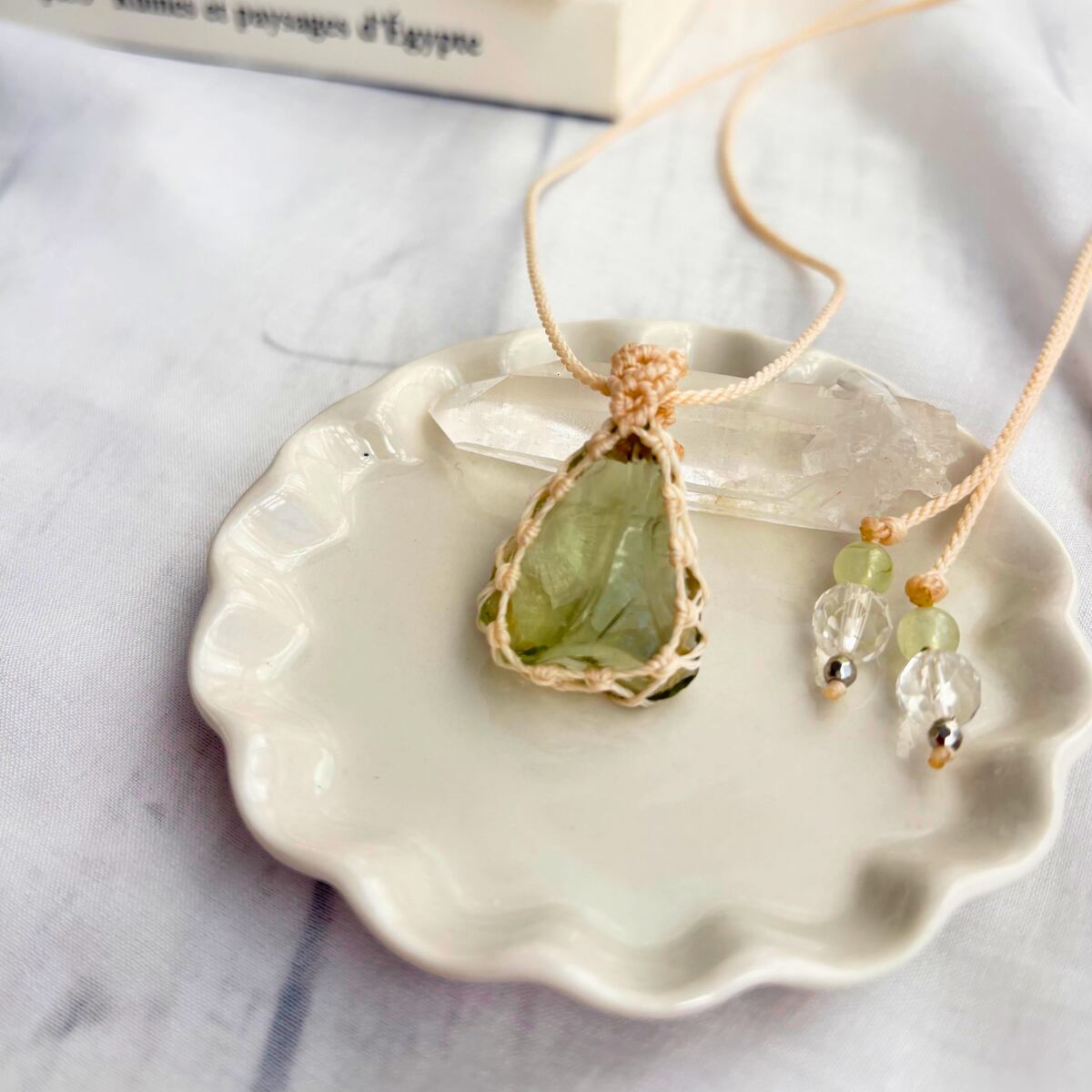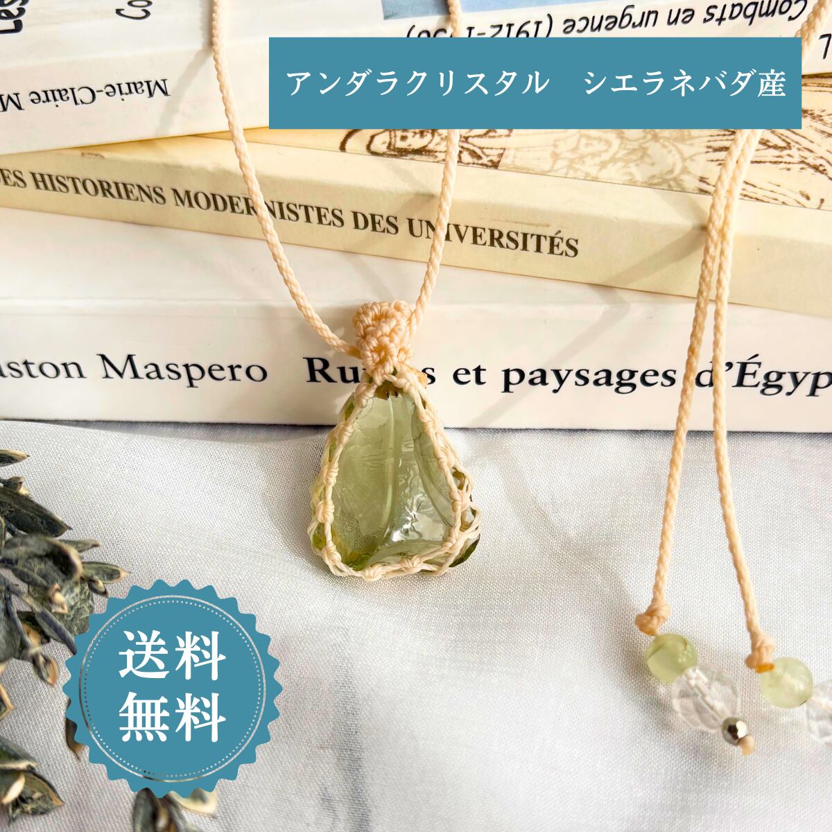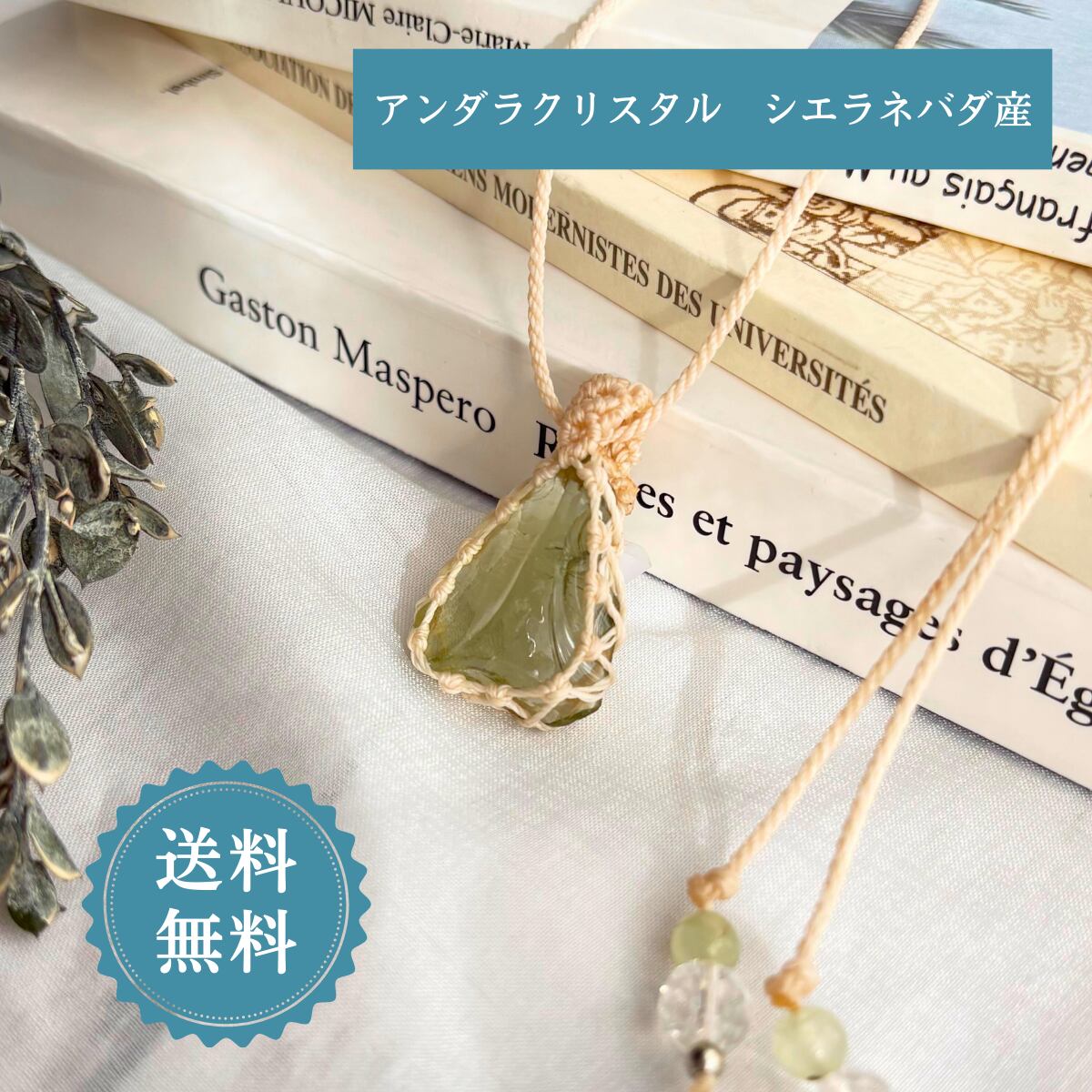 ペンダントトップ ネックレス 天然石 アンダラクリスタル シエラネバダ産 金属アレルギー対応 マクラメ編み テラオリーブ 大人可愛い 薄緑石 白紐 600204
