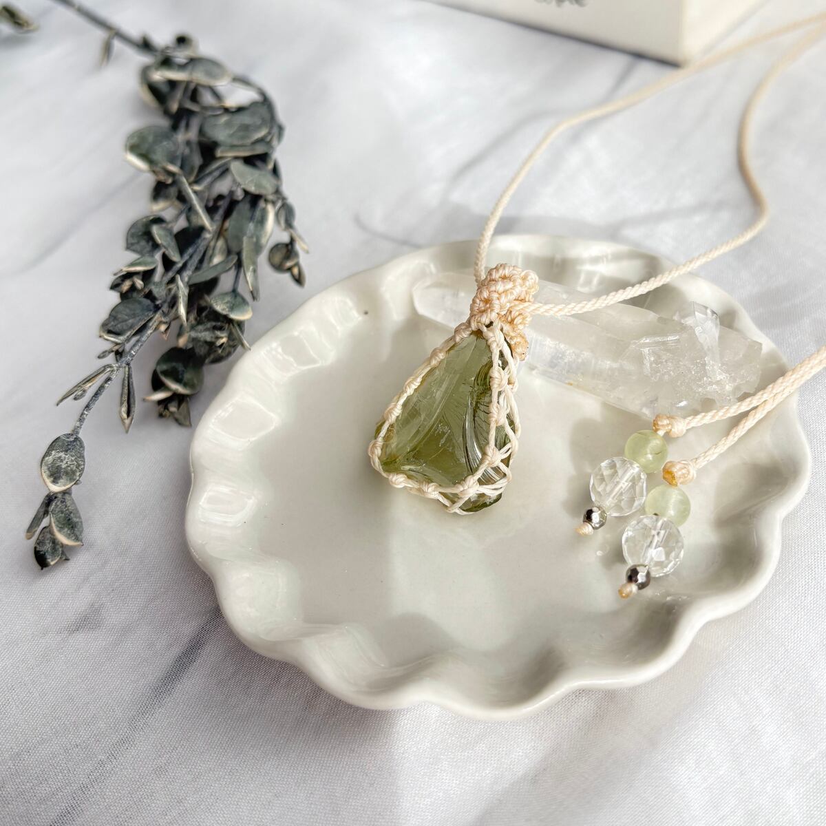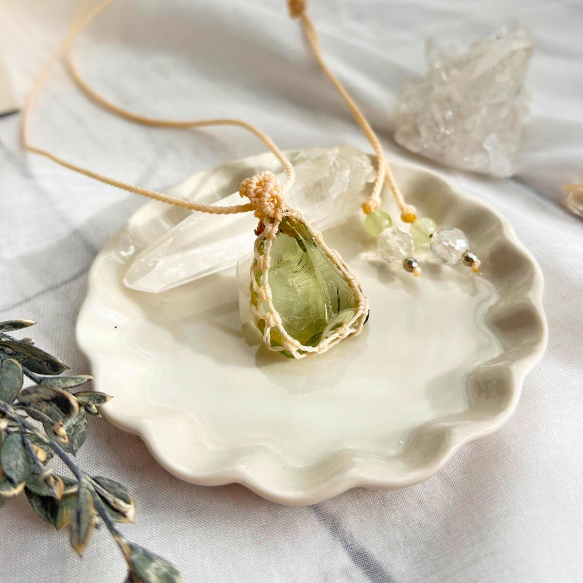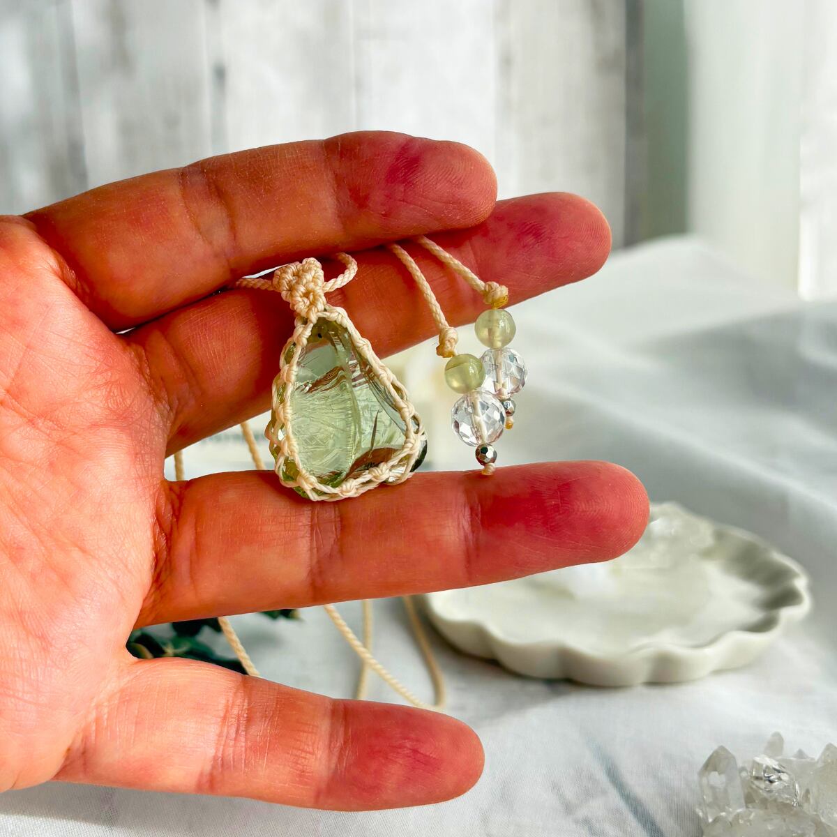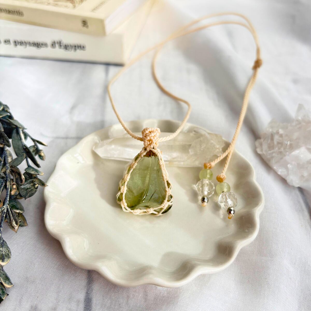 ペンダントトップ ネックレス 天然石 アンダラクリスタル シエラネバダ産 金属アレルギー対応 マクラメ編み テラオリーブ 大人可愛い 薄緑石 白紐 600204