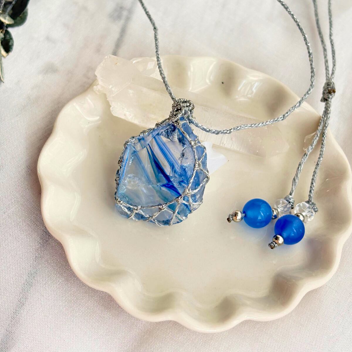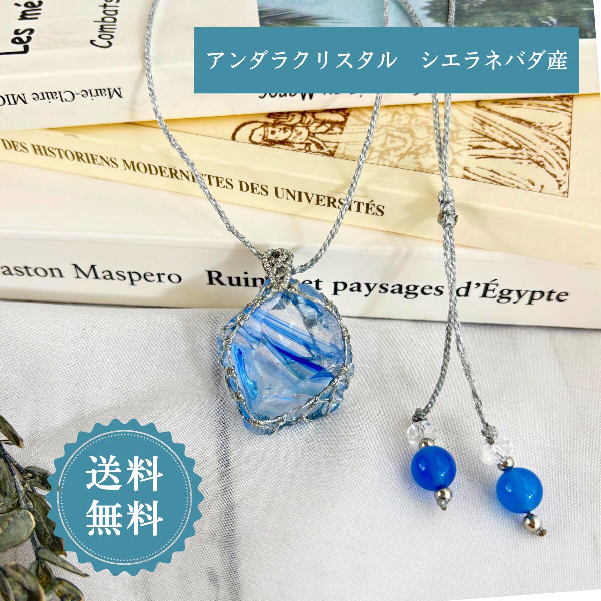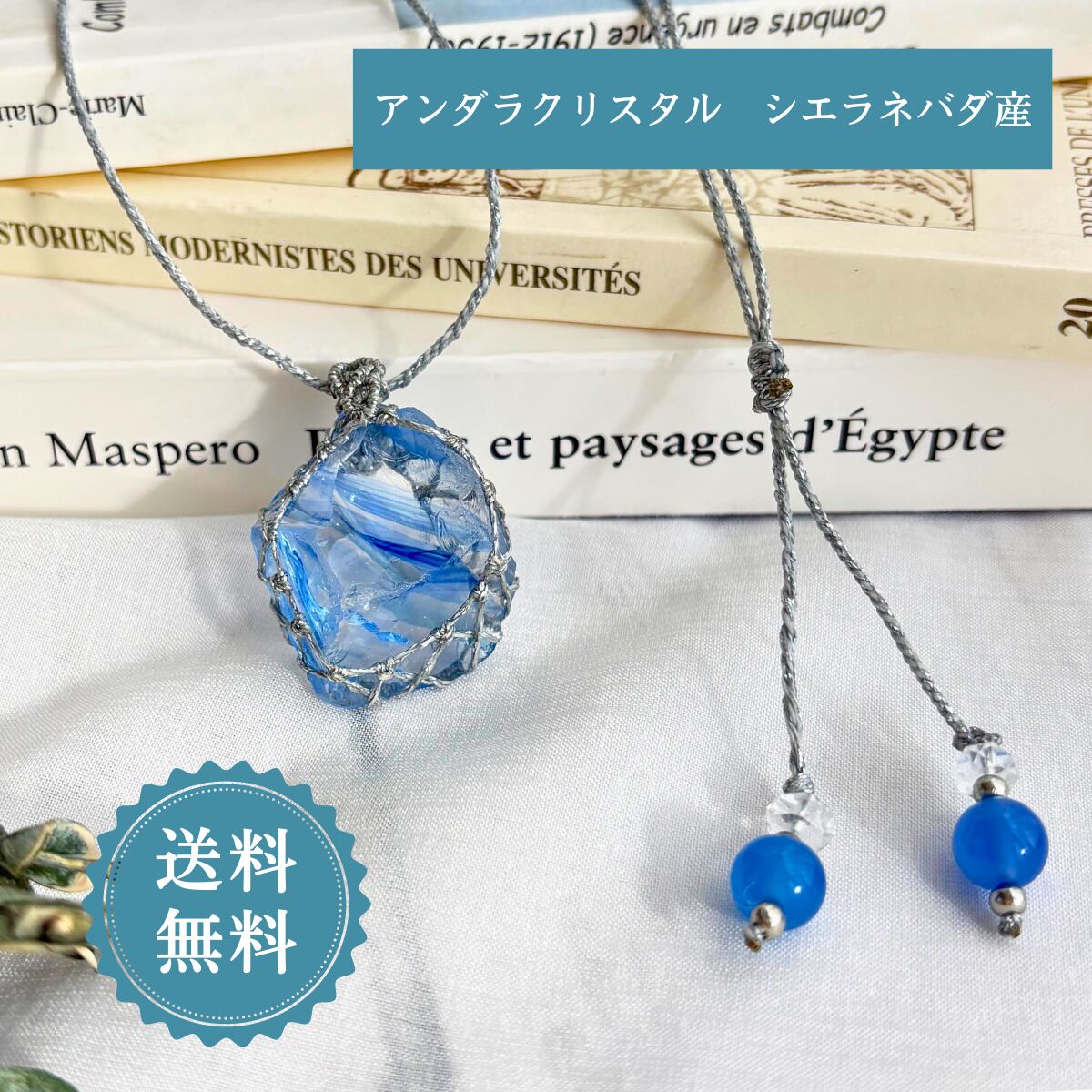 こちらは、シエラネバダ産の薄水色のアンダラクリスタルを使用した