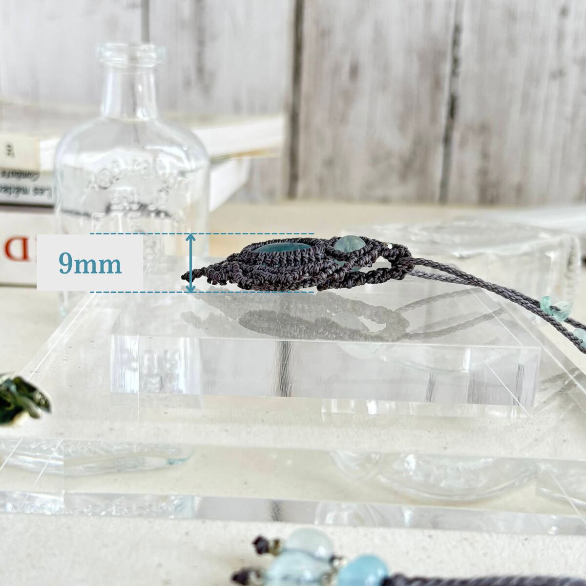 金属アレルギー対応 マクラメ編み 大人かわいい 高波動 水色石 グレー紐 610403
