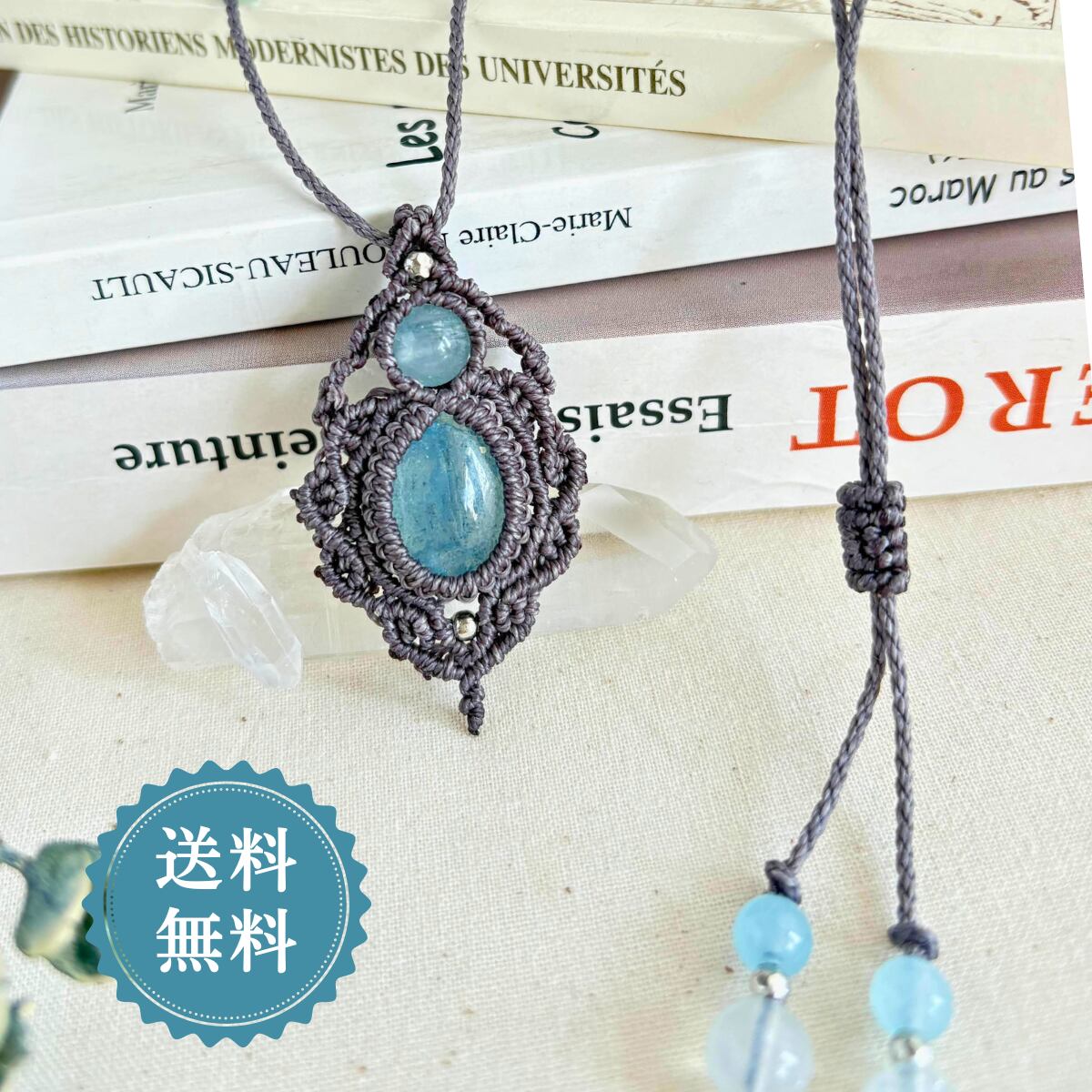 ペンダントトップ ネックレス ペンダント天然石 アクアマリン 金属アレルギー対応 マクラメ編み 大人かわいい 高波動 水色石 グレー紐 610403