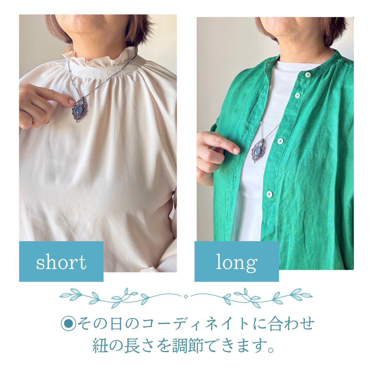 首元に沿うショートにも、ゆったりとしたロングにも。