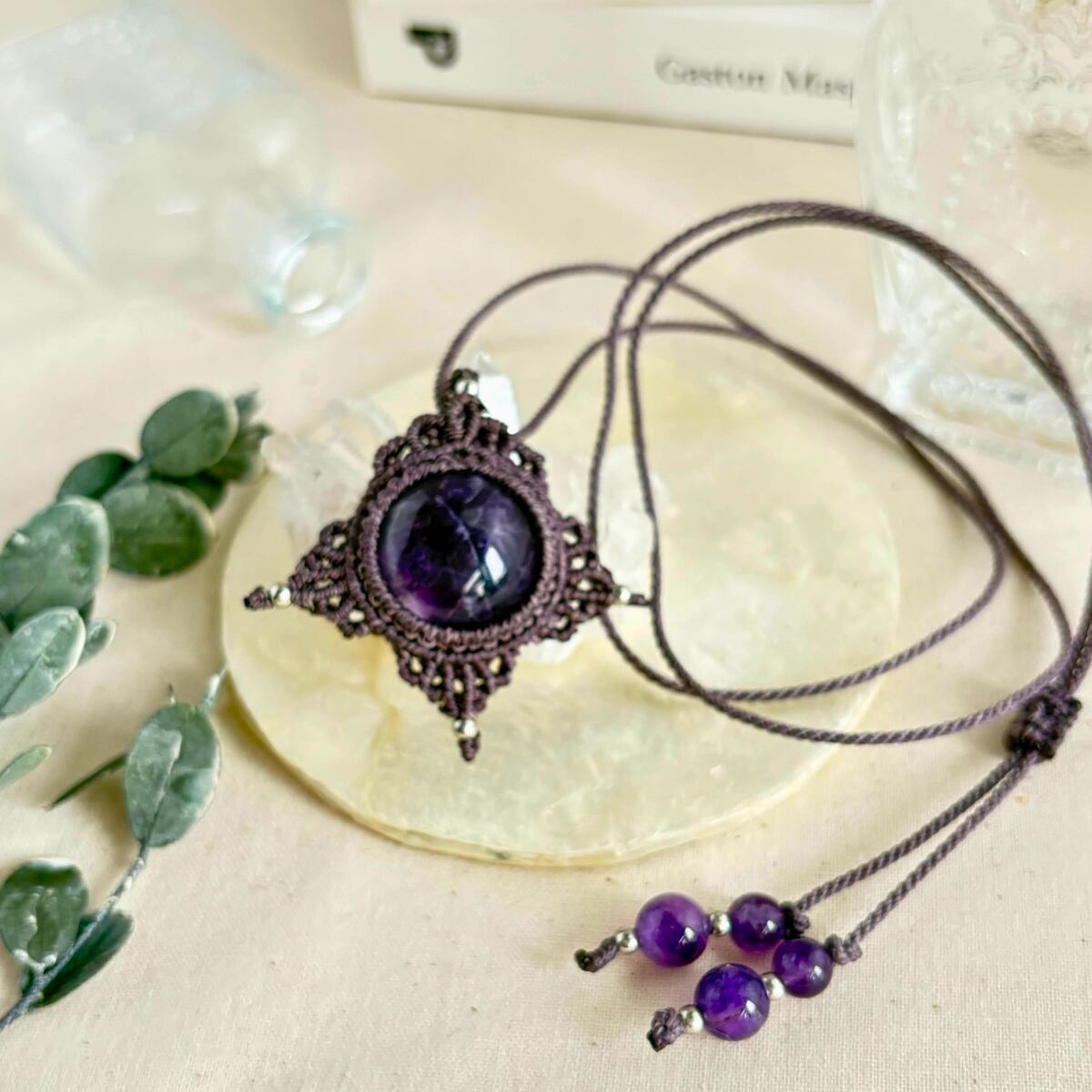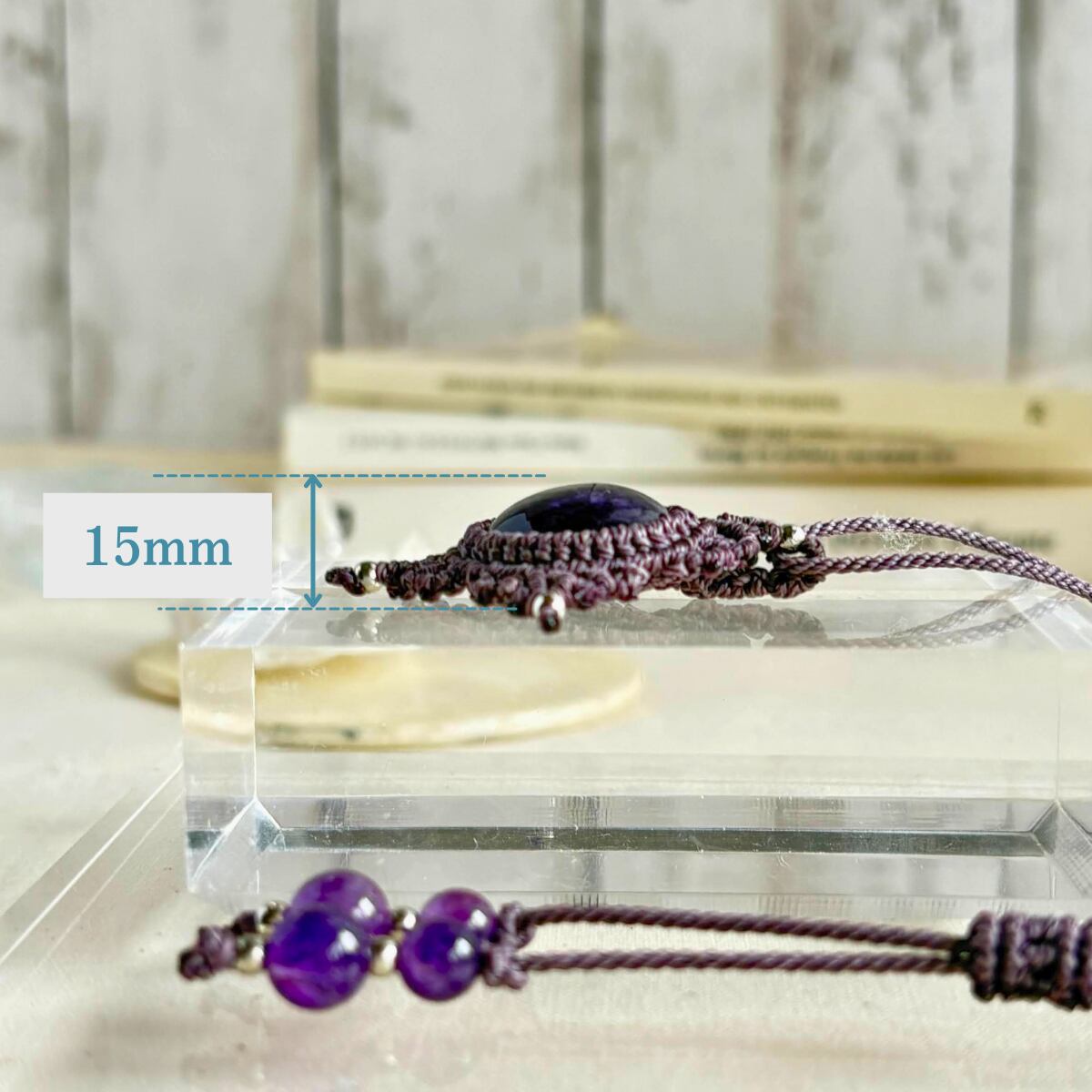 アメジストの穏やかなエネルギーと、紫紐の優しい存在感が