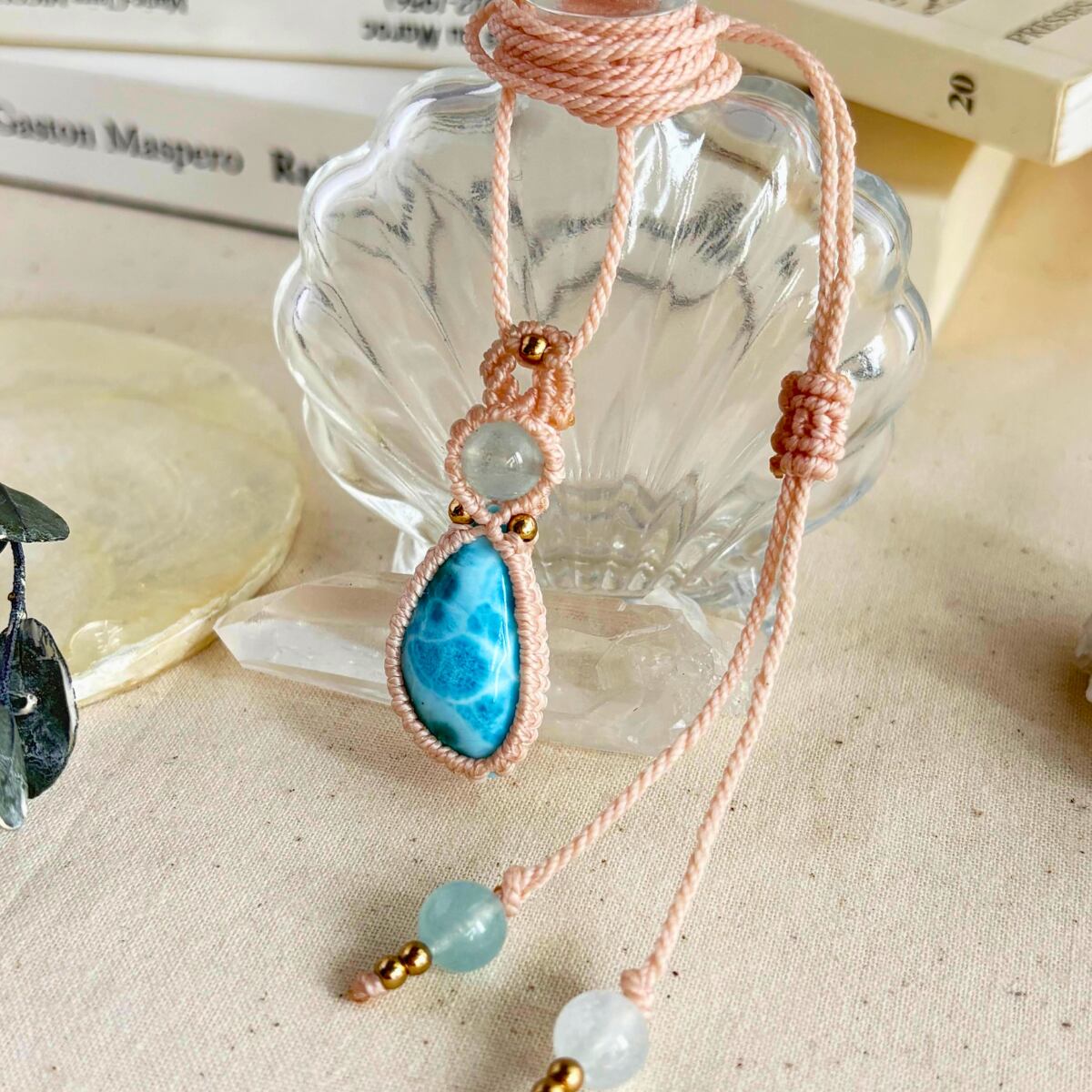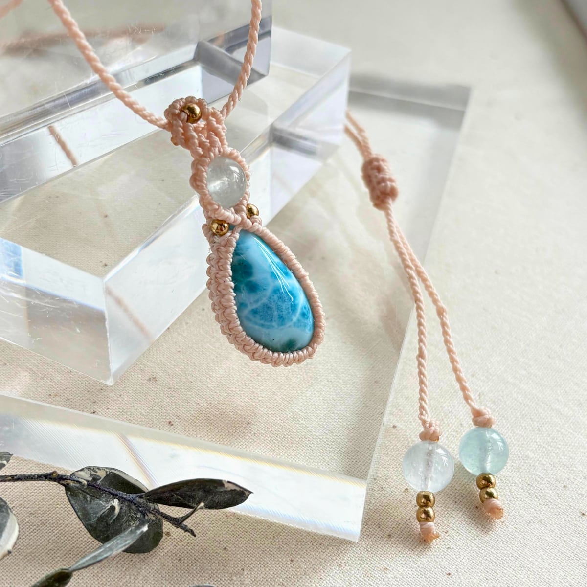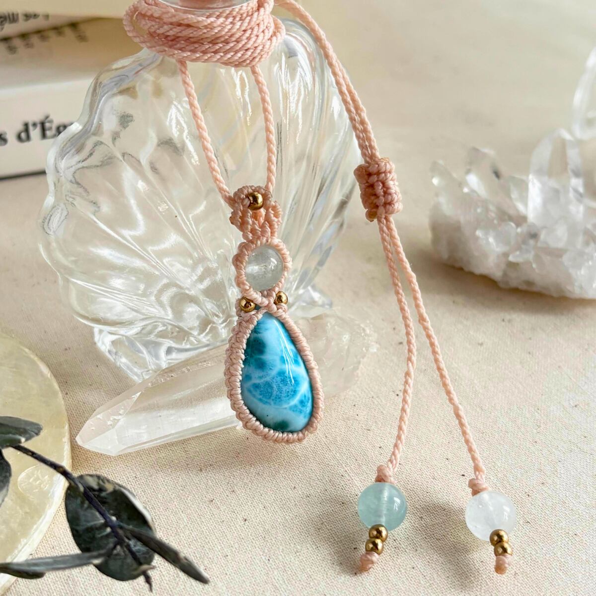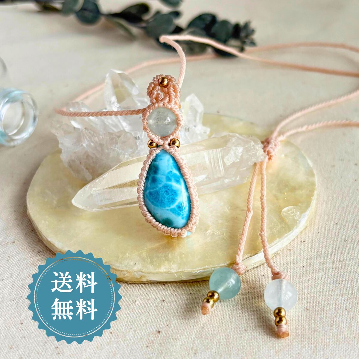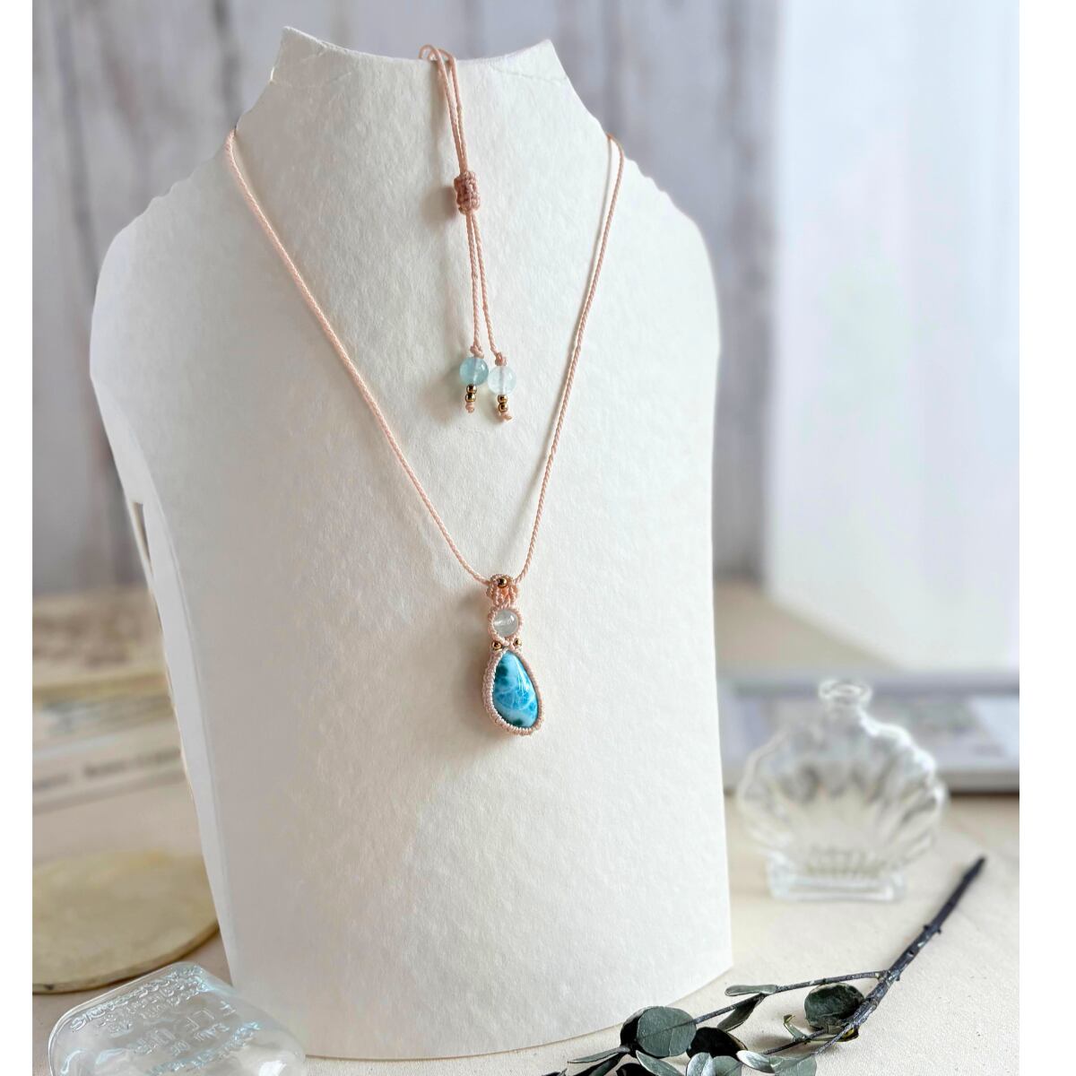 ペンダントトップ ネックレス ペンダント 天然石 ラリマー アクアマリン 金属アレルギー対応 マクラメ編み 大人可愛い プレゼント 大人カッコいい 白紐 610410