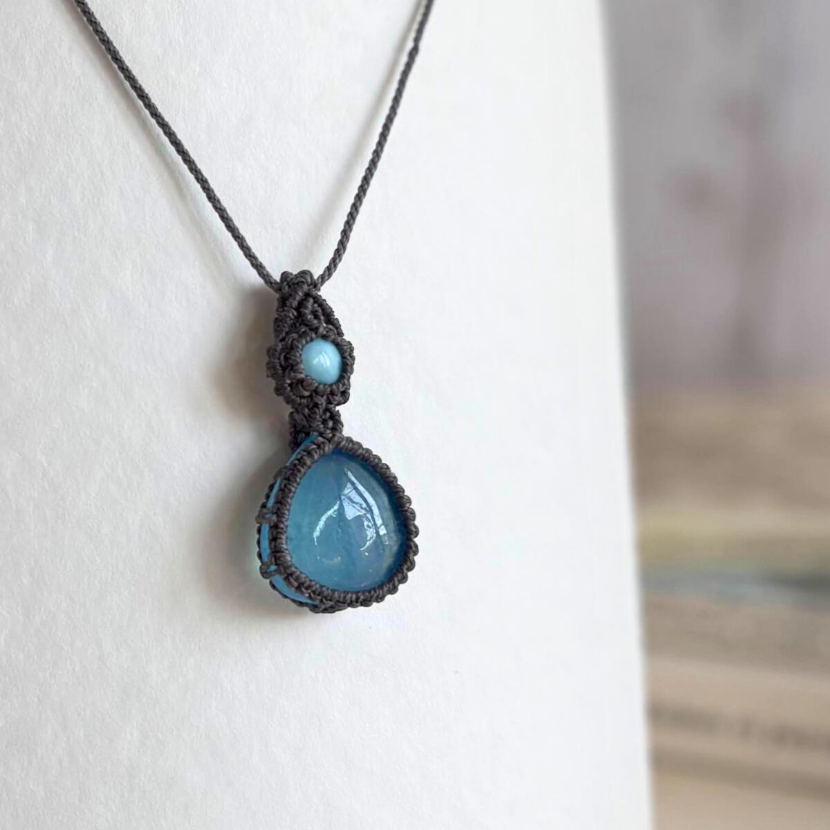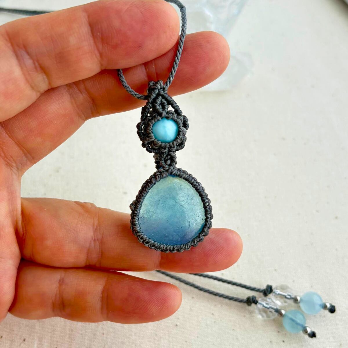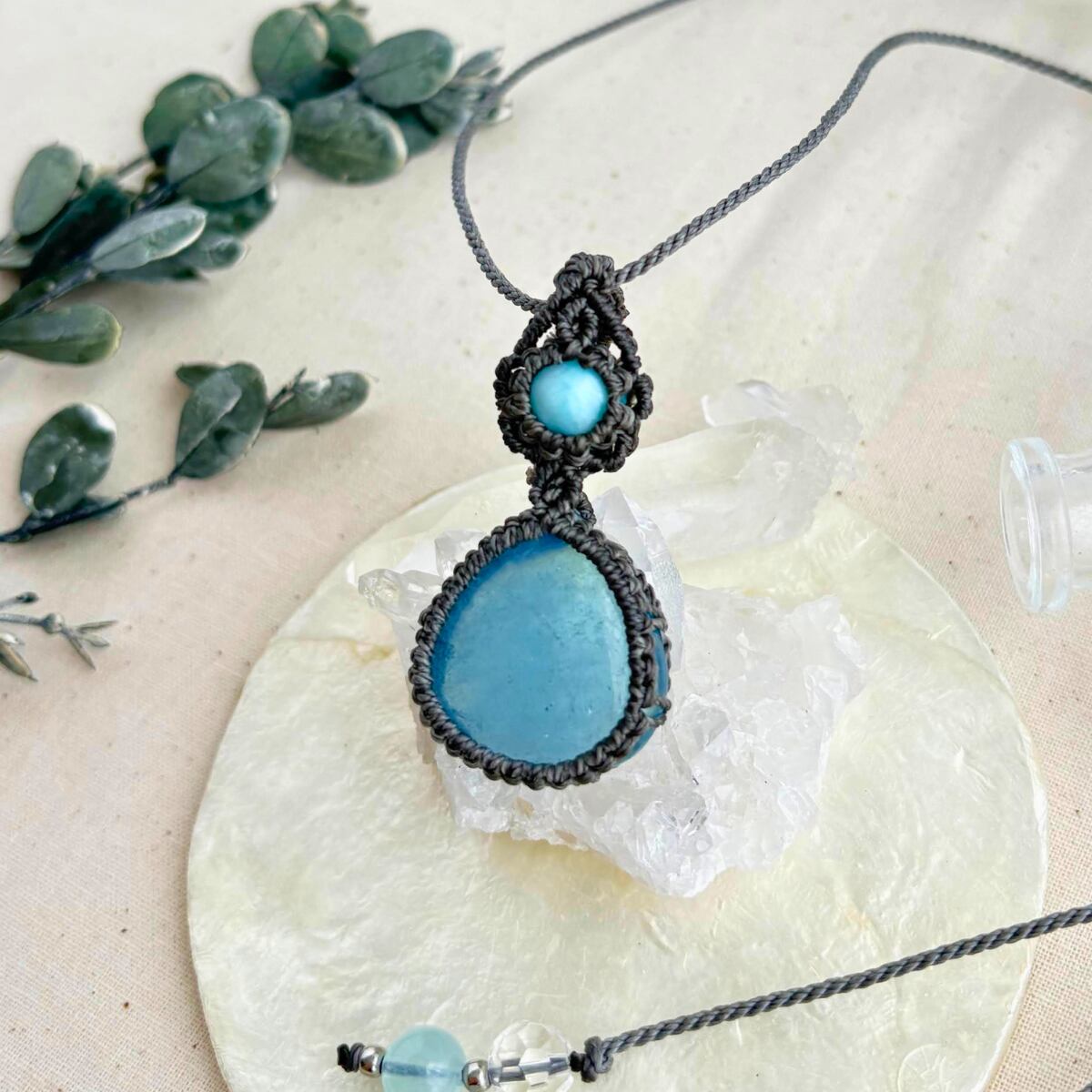 ペンダントトップ ネックレス ペンダント 天然石 ラリマー アクアマリン 金属アレルギー対応 マクラメ編み 大人可愛い プレゼント 大人カッコいい グレー紐 610411