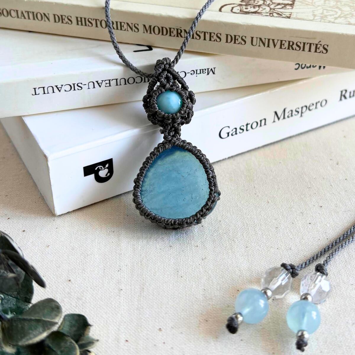 #ラリマー #アクアマリン #天然石アクセサリー #マクラメ編み #一点もの