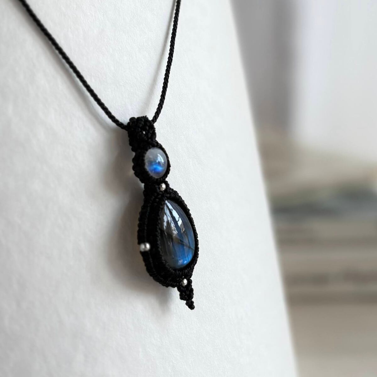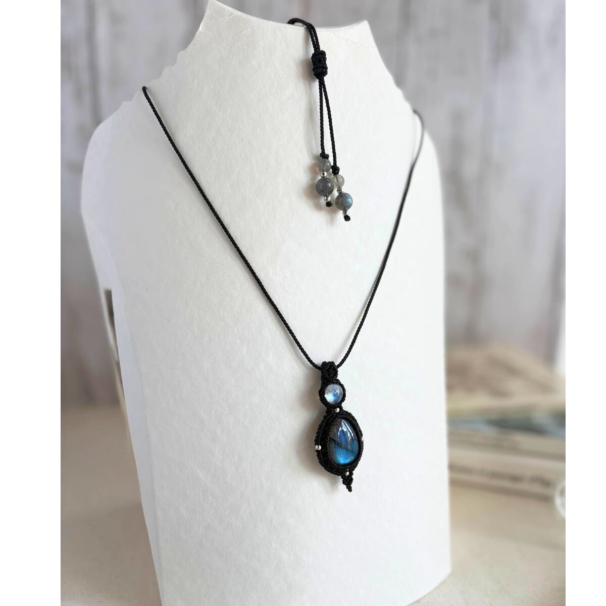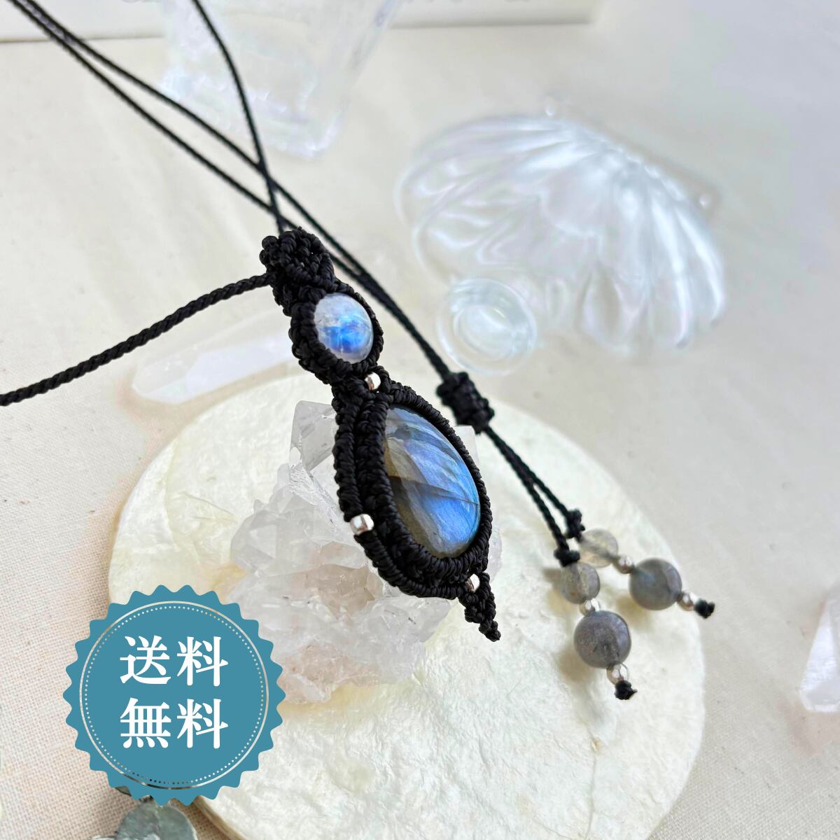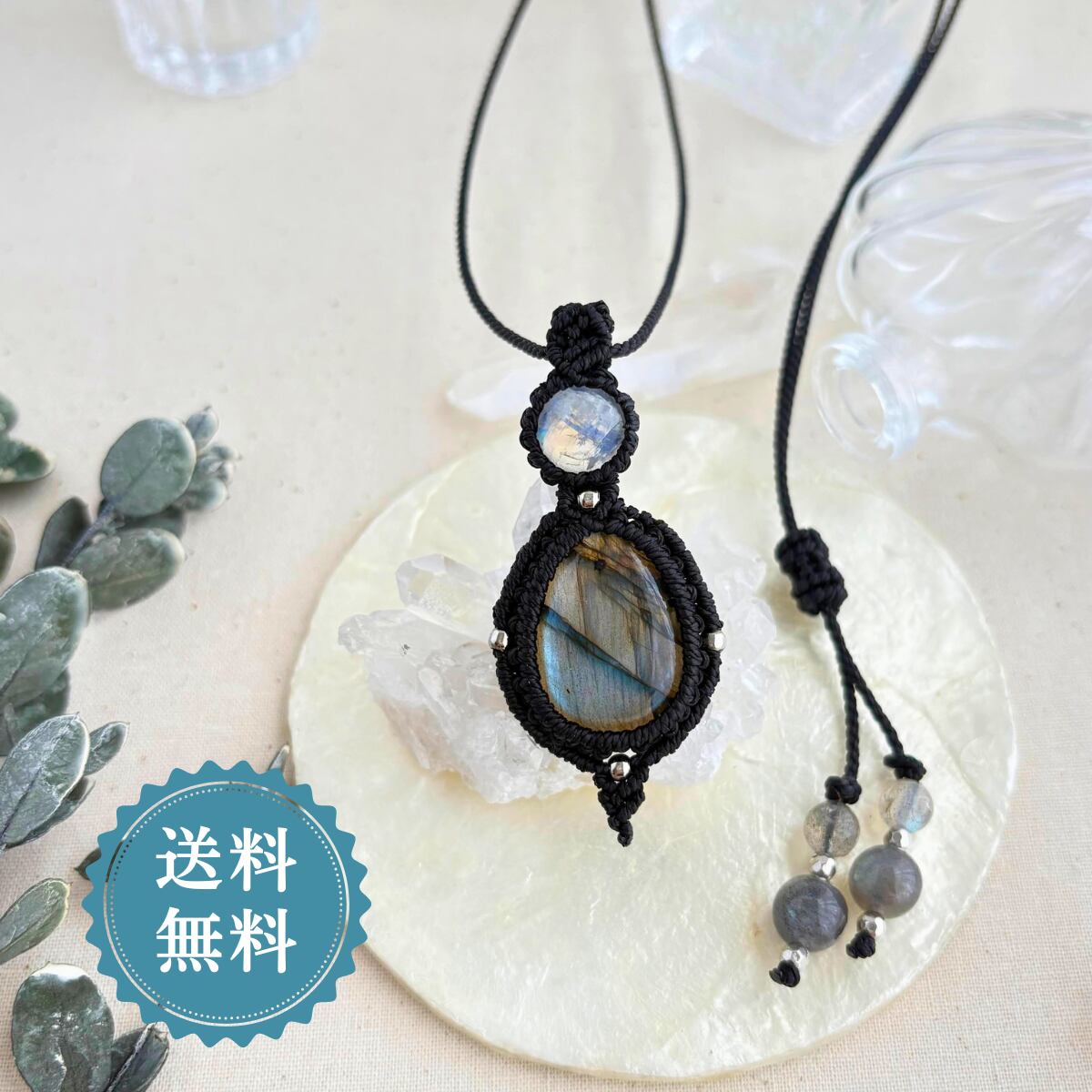 ペンダントトップ ネックレス ペンダント 天然石 ラブラドライト 金属アレルギー対応 マクラメ編み 大人可愛い プレゼント 大人カッコいい 黒紐 610414