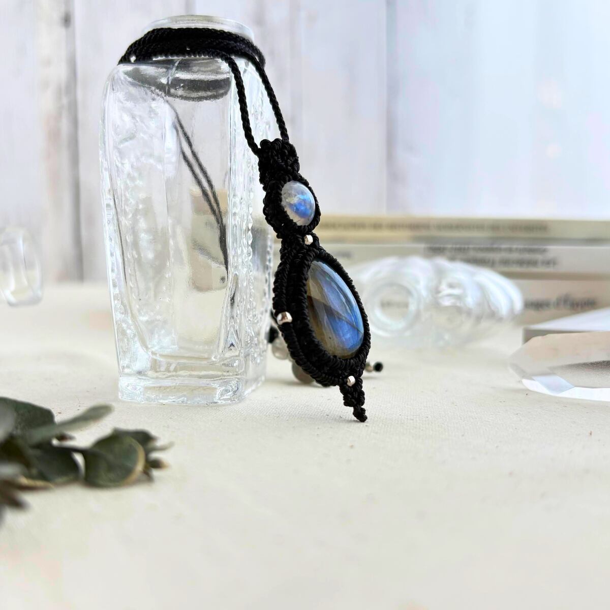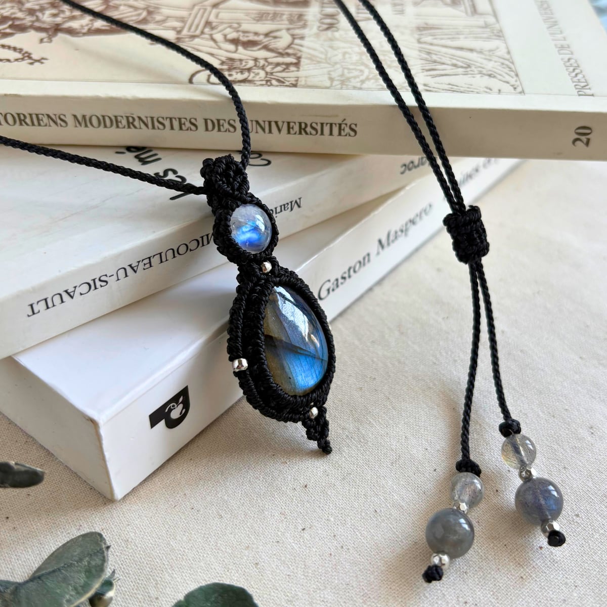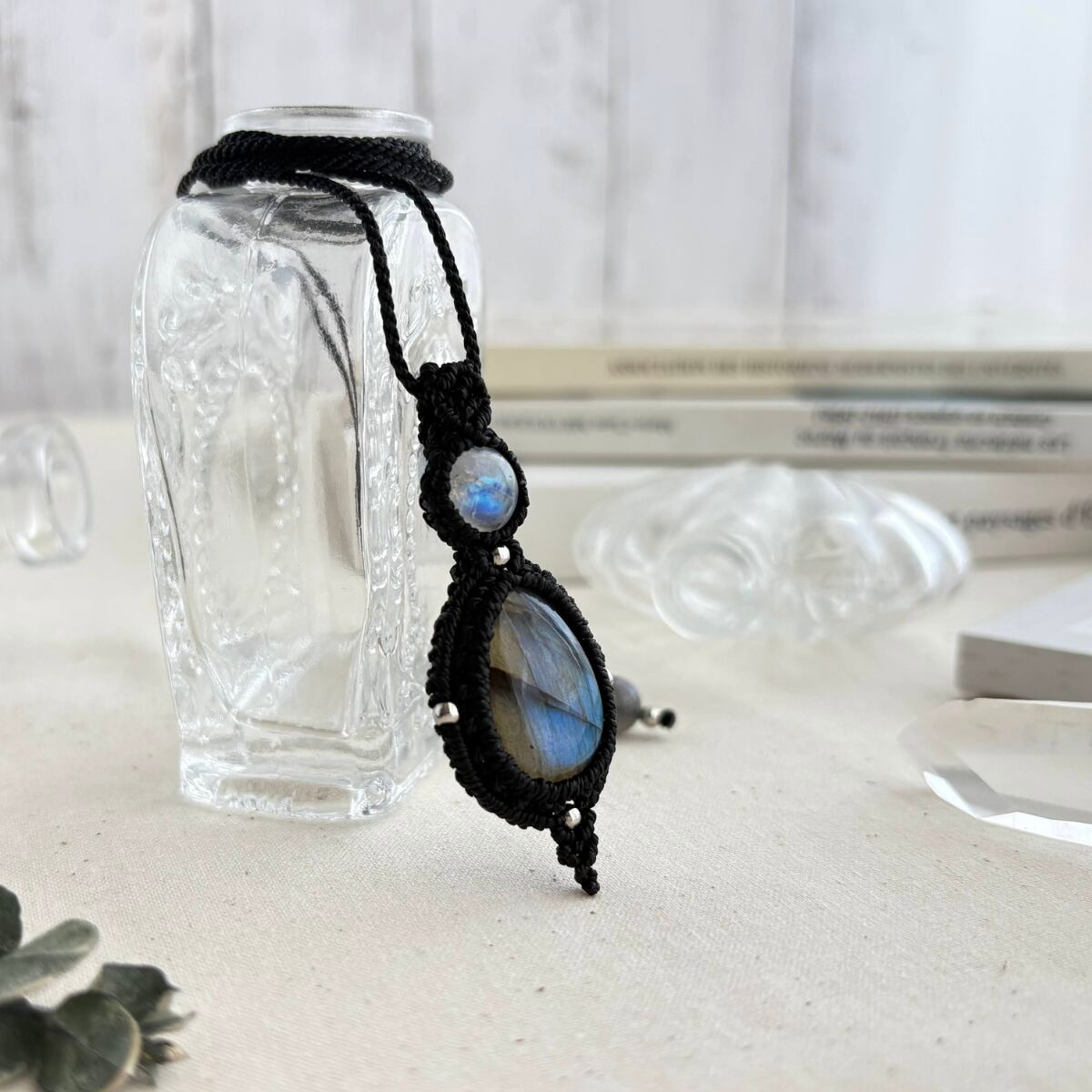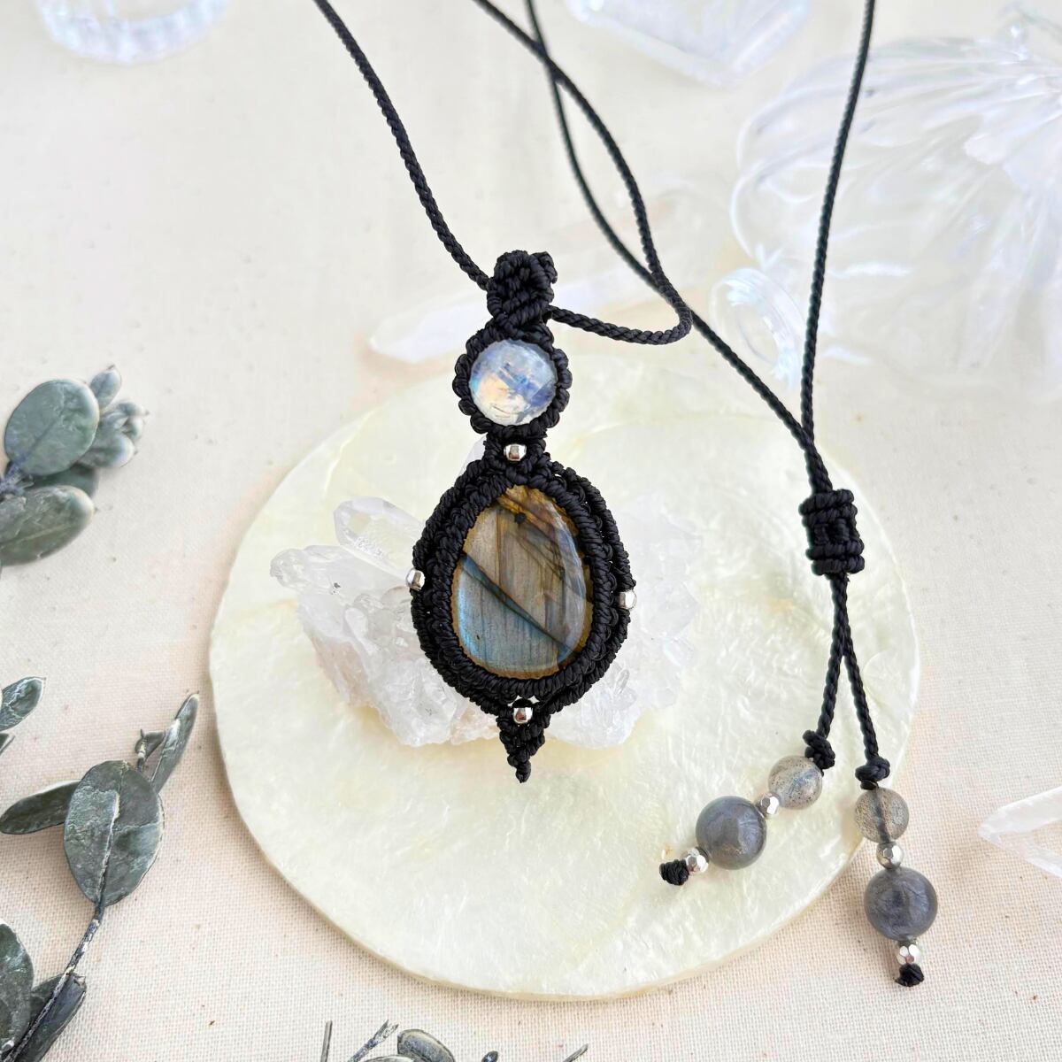 ペンダントトップ ネックレス ペンダント 天然石 ラブラドライト 金属アレルギー対応 マクラメ編み 大人可愛い プレゼント 大人カッコいい 黒紐 610414