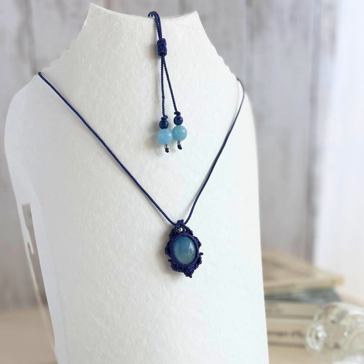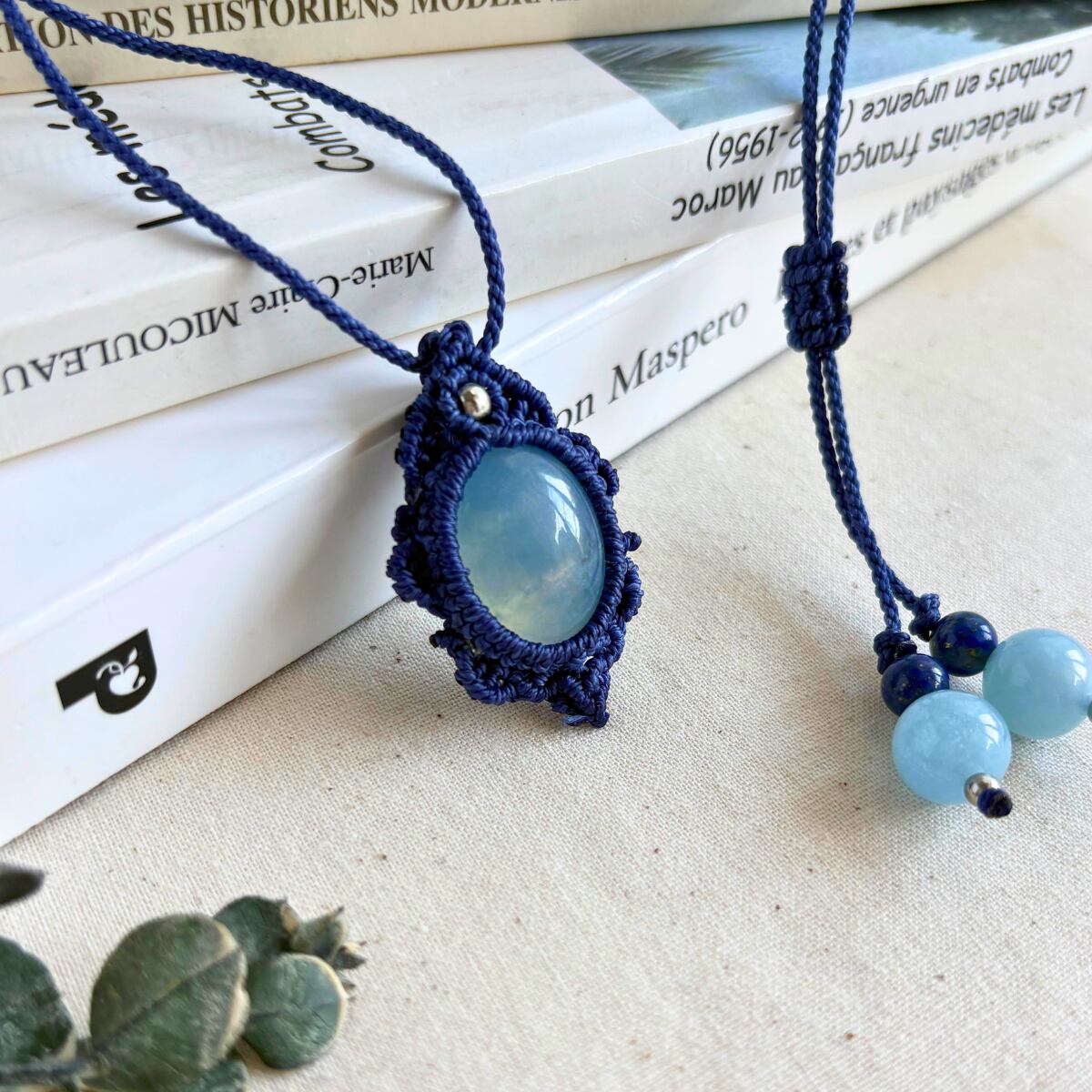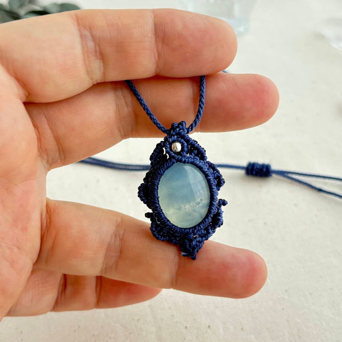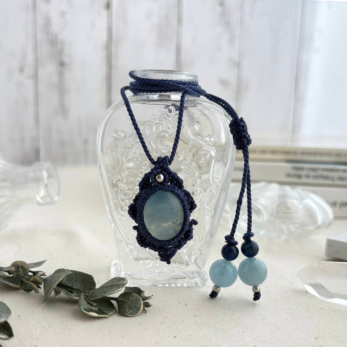 ペンダントトップ ネックレス ペンダント 天然石 アクアマリン 金属アレルギー対応 マクラメ編み 大人可愛い プレゼント 大人カッコいい 紺色紐 610413
