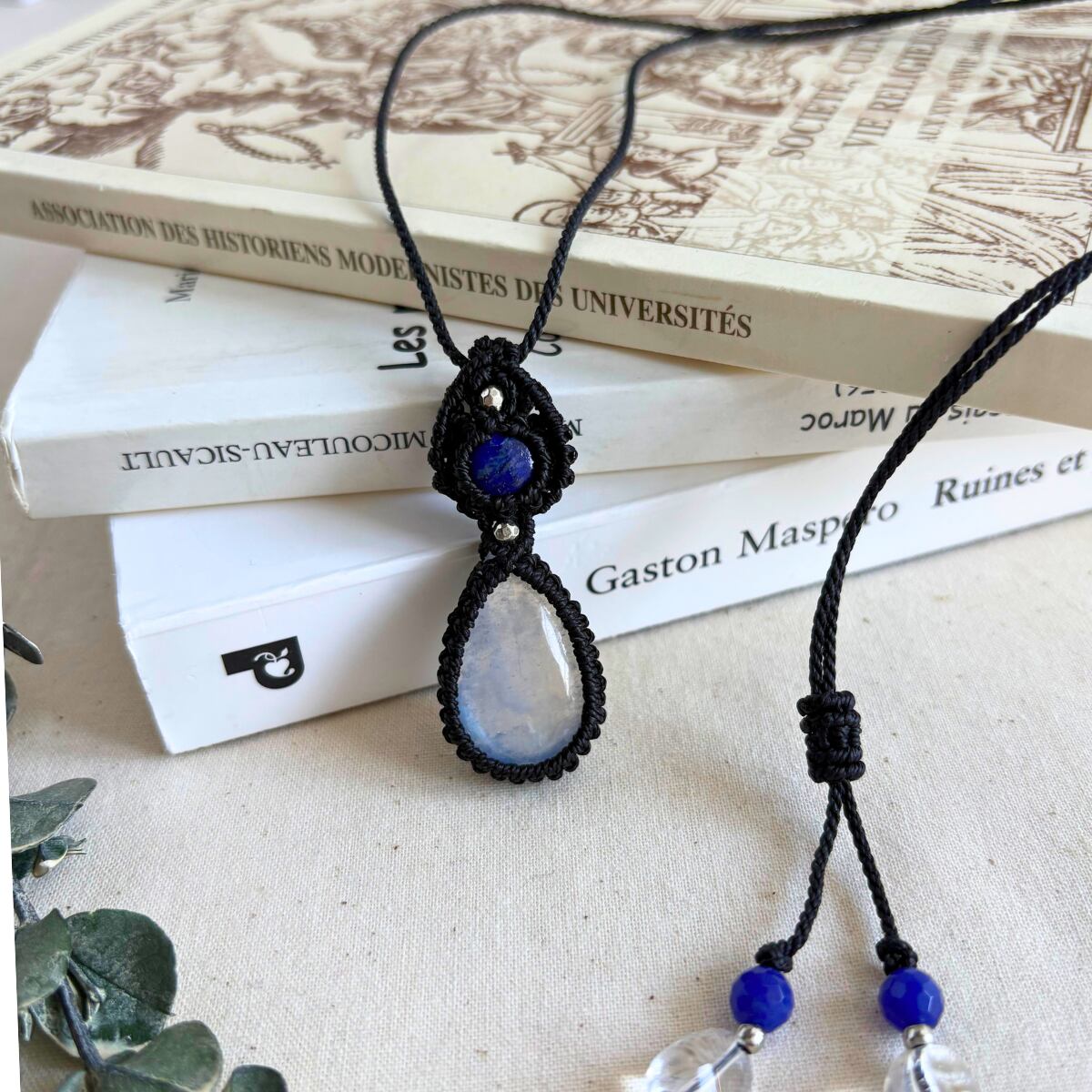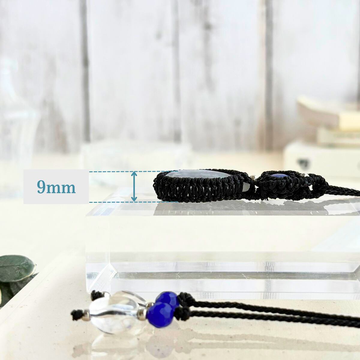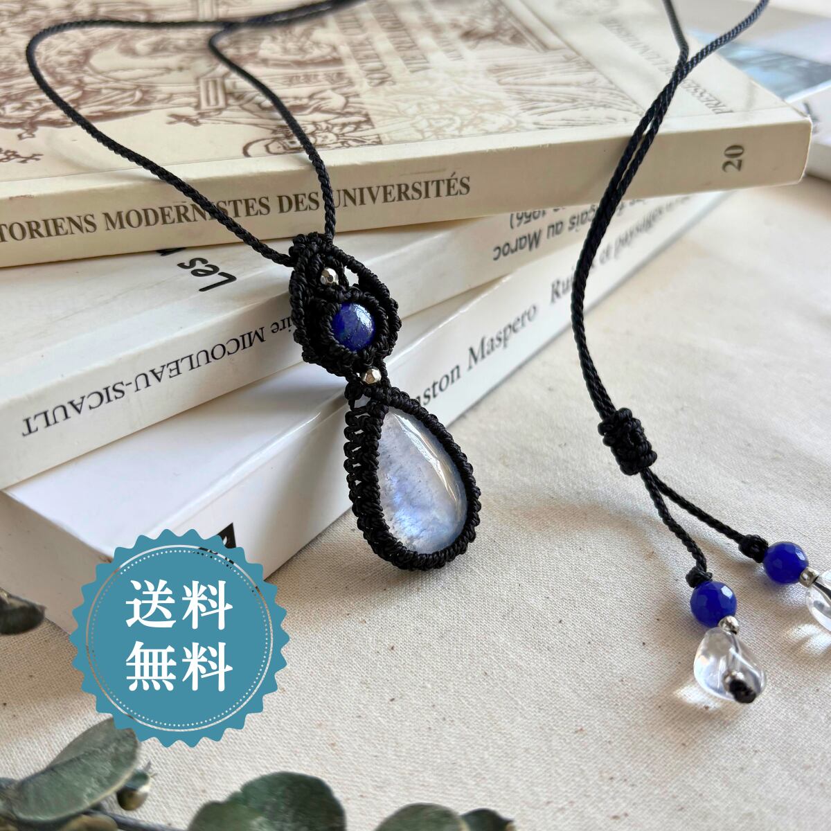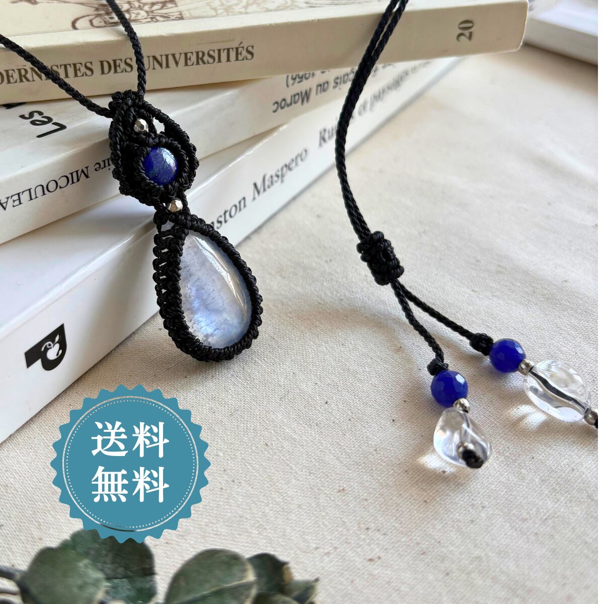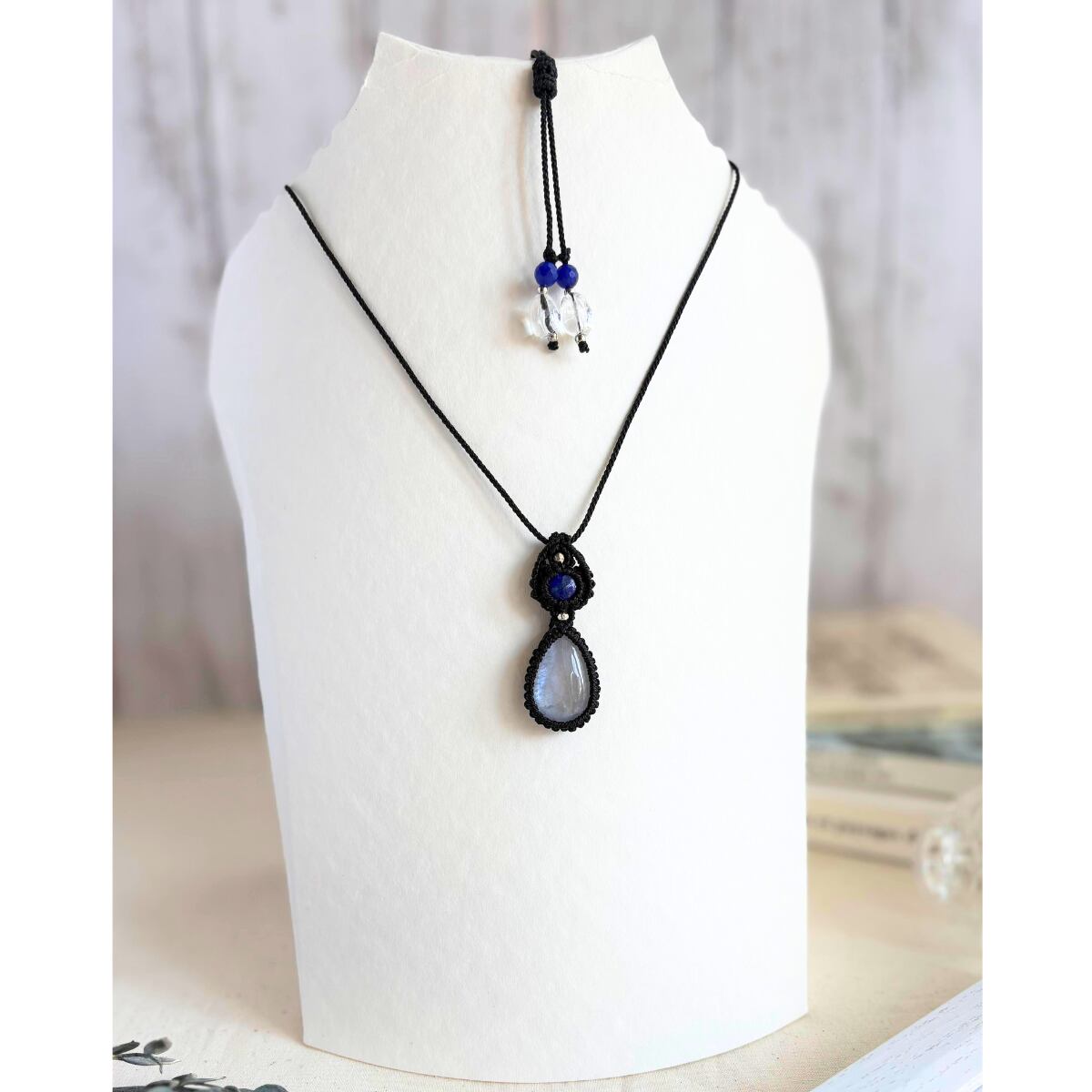 ペンダントトップ ネックレス ペンダント 天然石 ブルームーンストーン 金属アレルギー対応 マクラメ編み 大人可愛い プレゼント 大人カッコいい 黒紐 610415