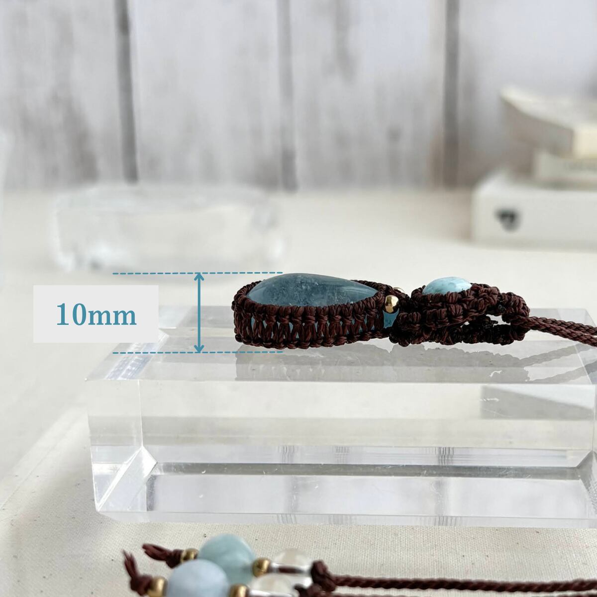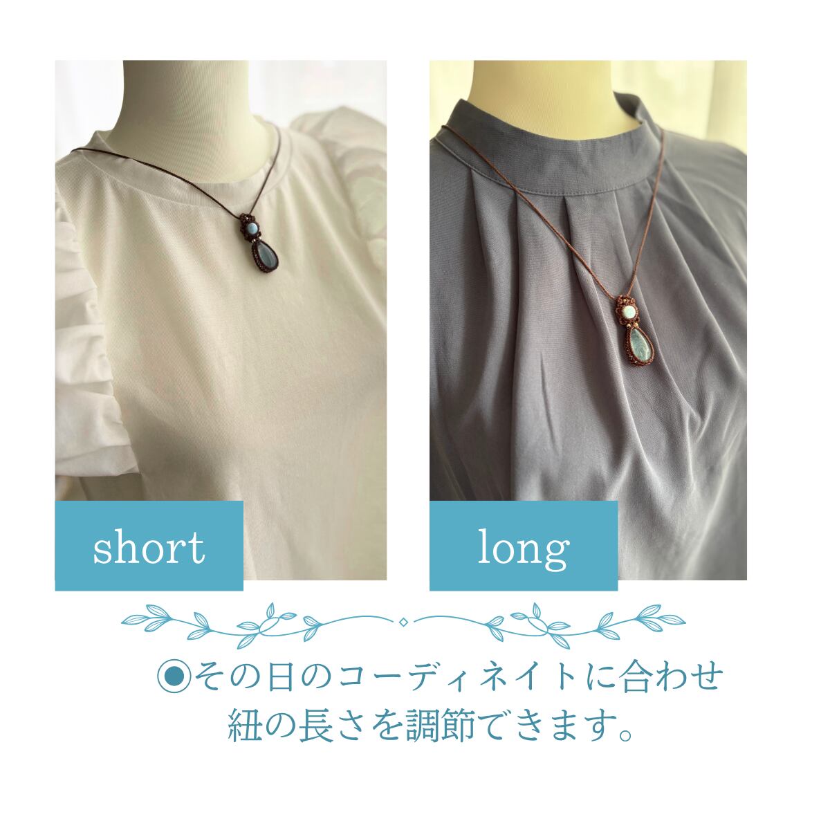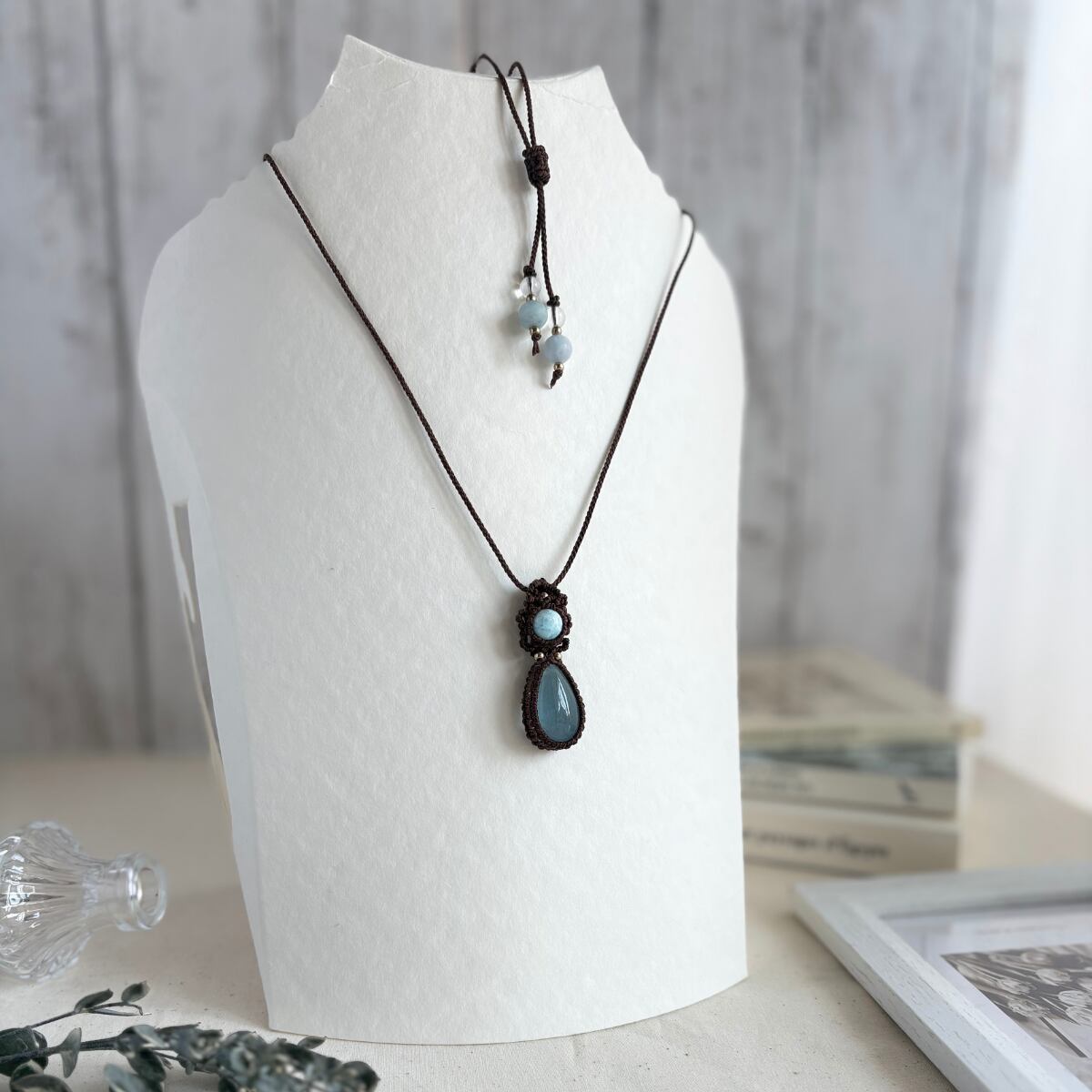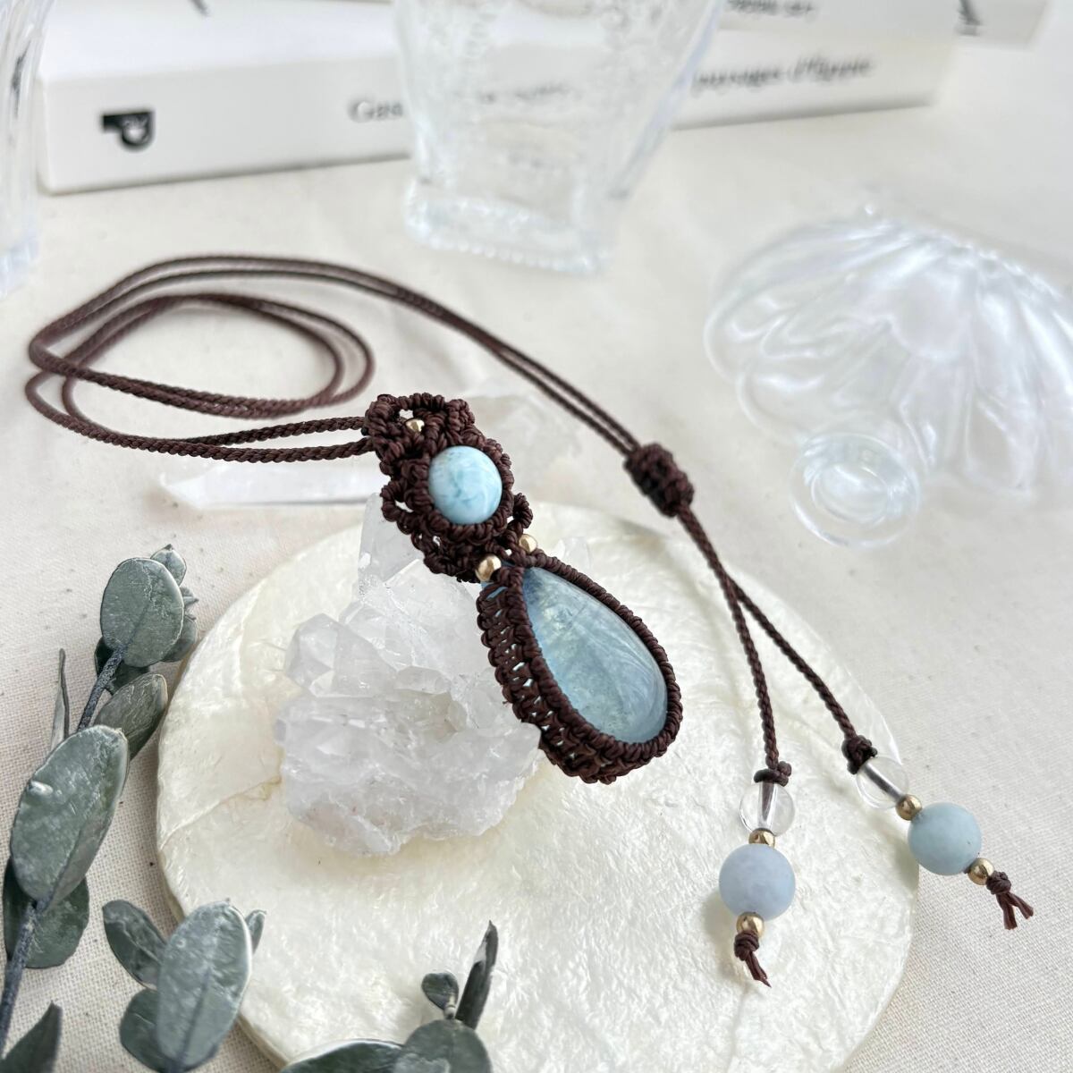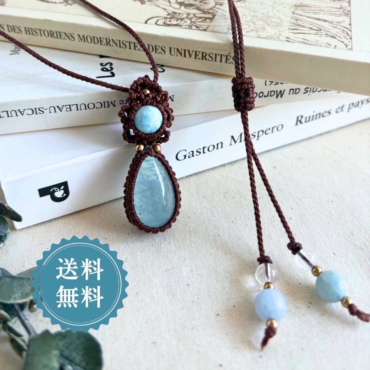 ペンダントトップ ネックレス ペンダント 天然石 ラリマー アクアマリン 金属アレルギー対応 マクラメ編み 大人可愛い プレゼント 大人カッコいい 茶紐 610416