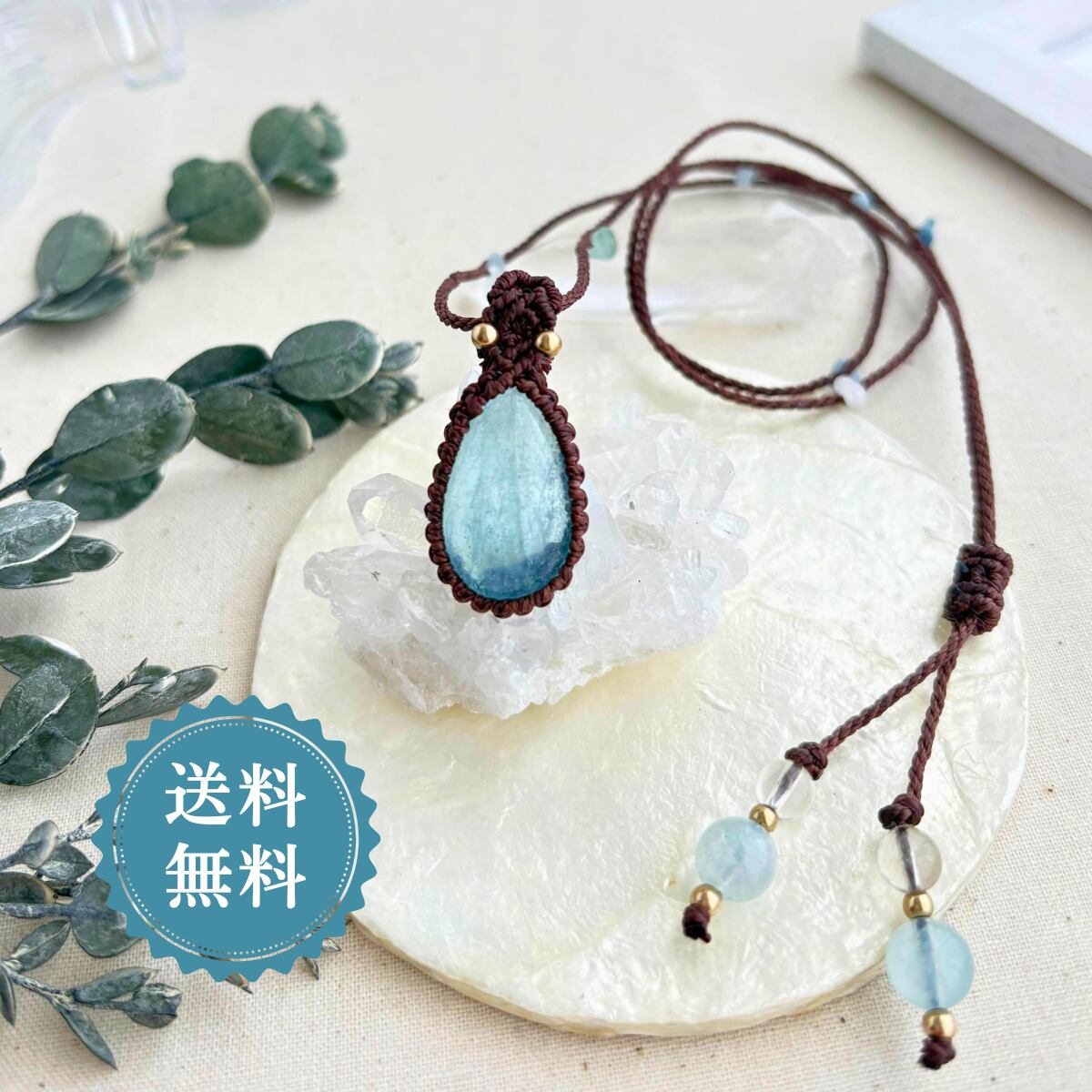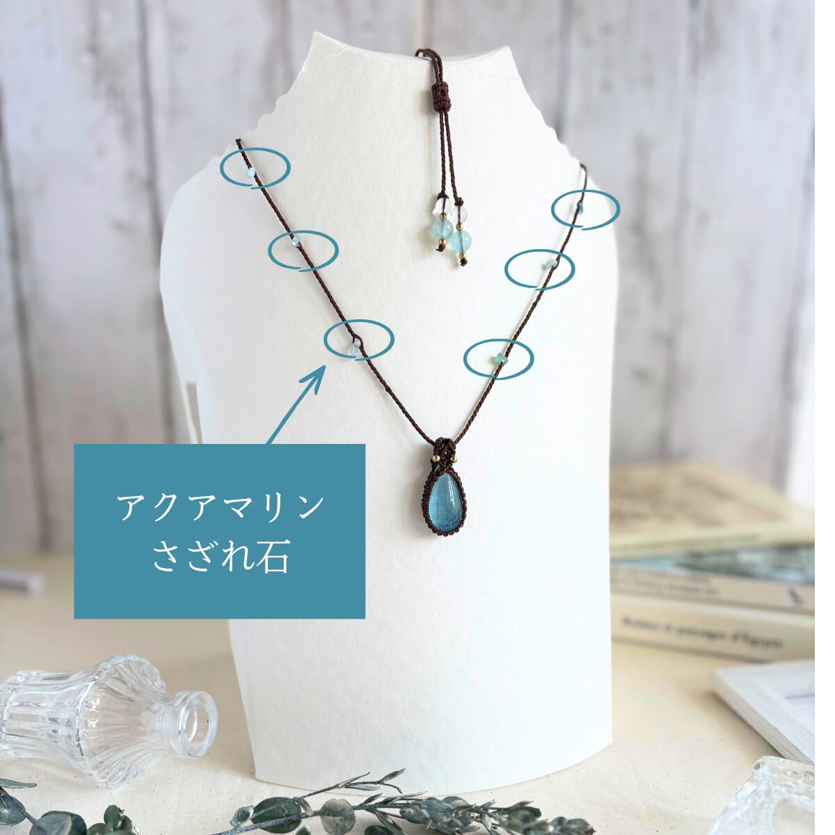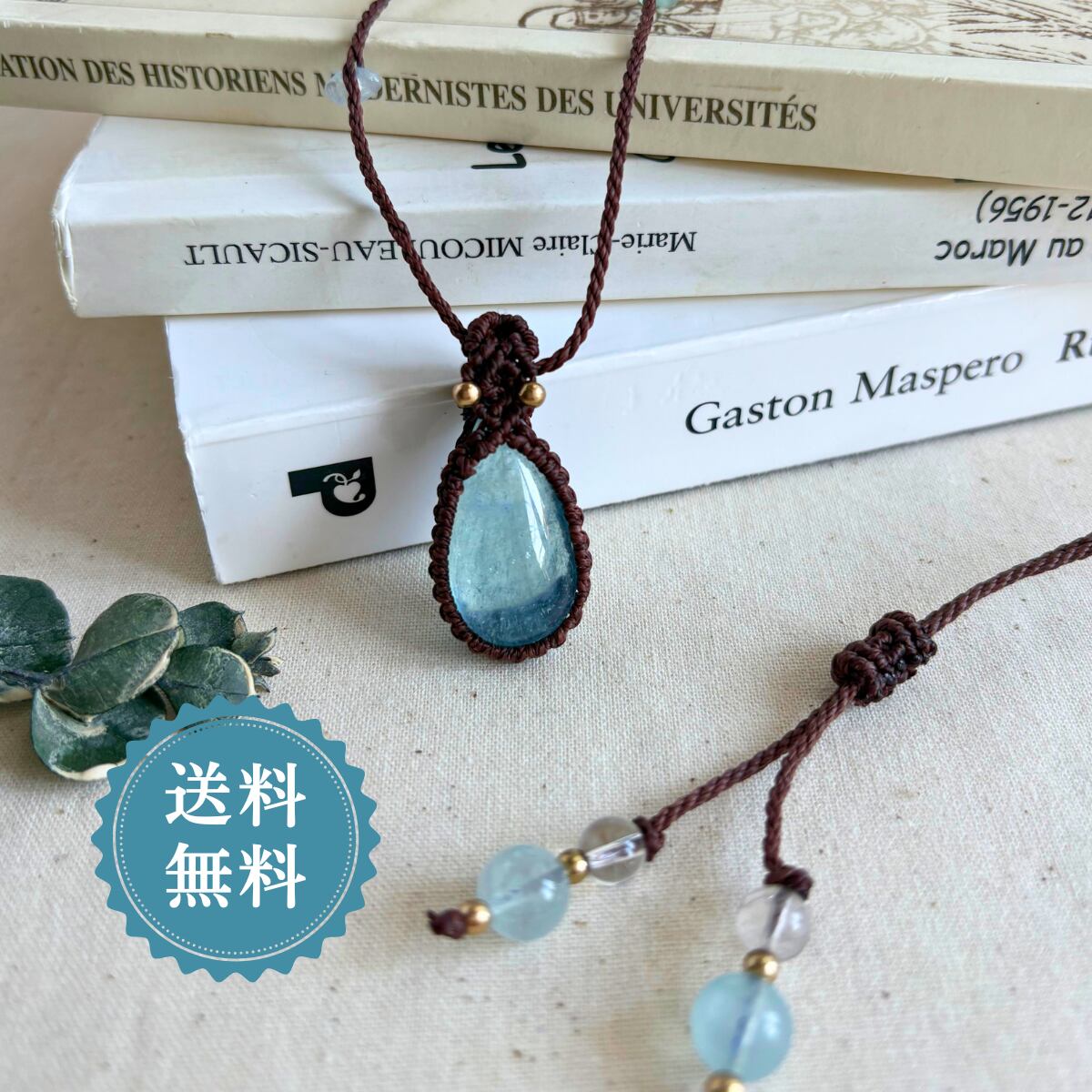 ペンダントトップ ネックレス ペンダント 天然石 アクアマリン 金属アレルギー対応 マクラメ編み 大人可愛い プレゼント 大人カッコいい 茶紐 610421