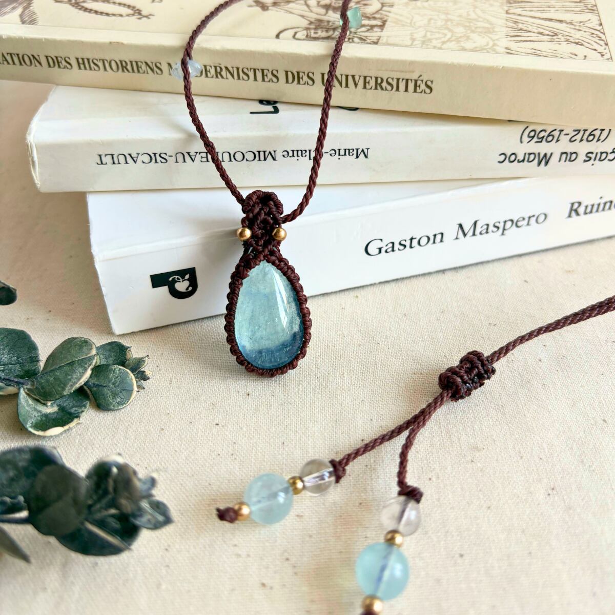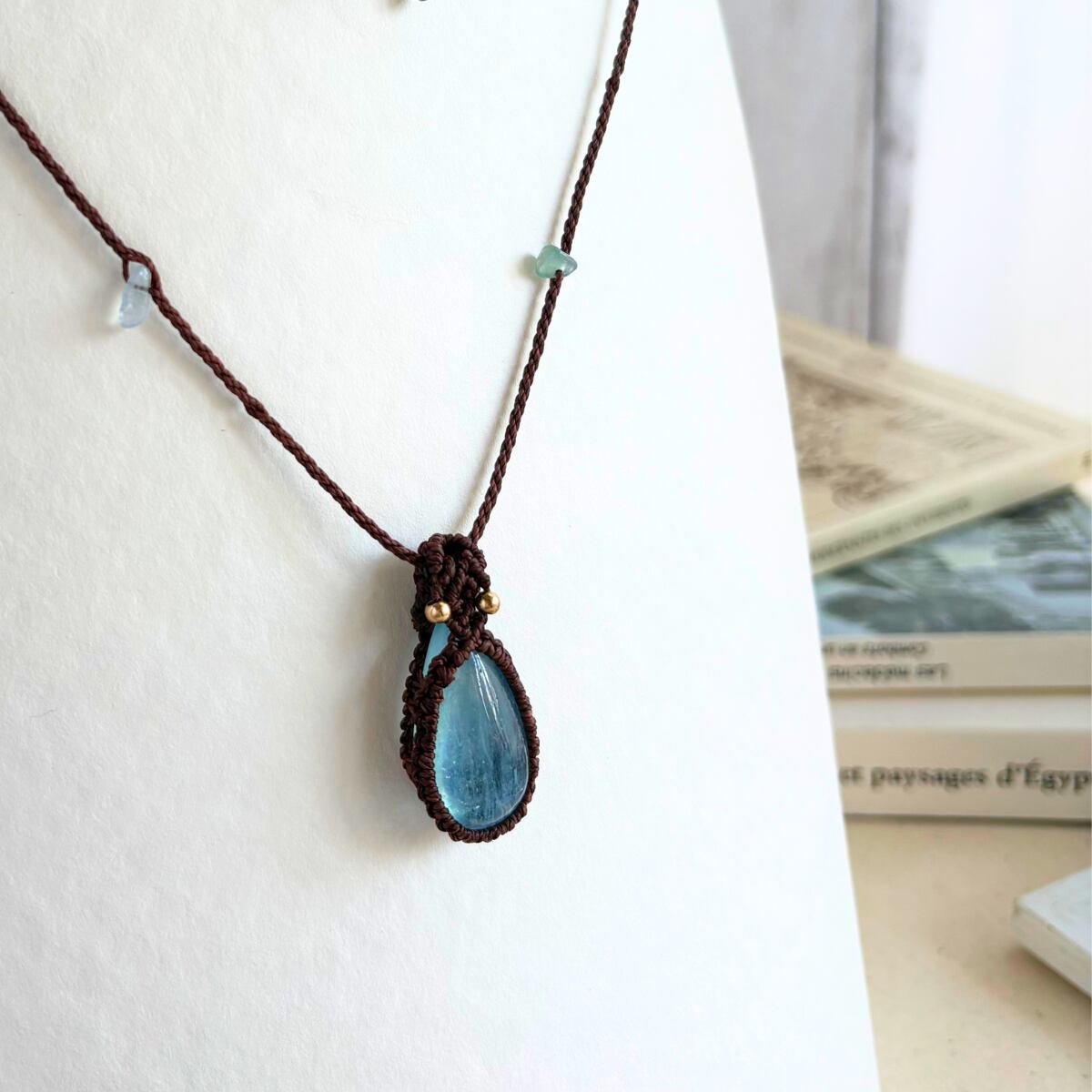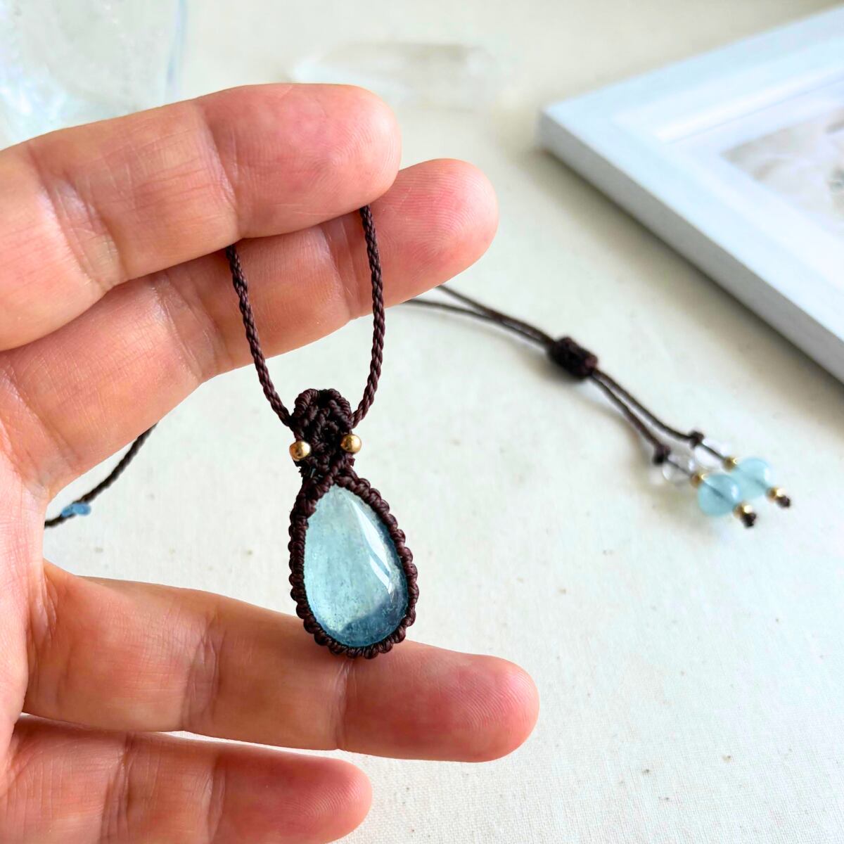 ペンダントトップ ネックレス ペンダント 天然石 アクアマリン 金属アレルギー対応 マクラメ編み 大人可愛い プレゼント 大人カッコいい 茶紐 610421