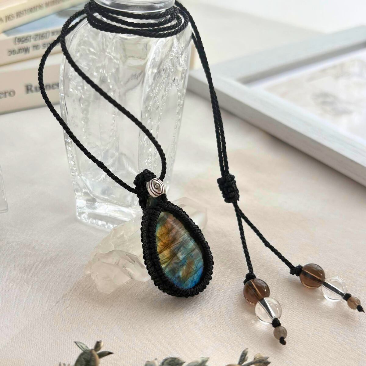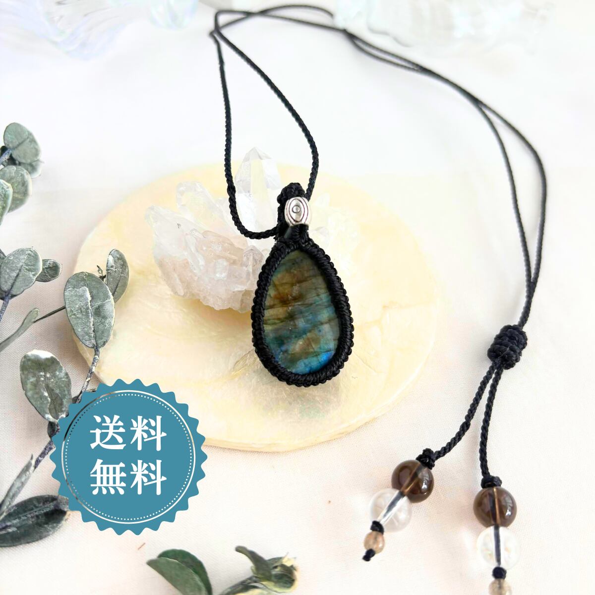 ラブラドライトのマクラメ編みペンダントです。
