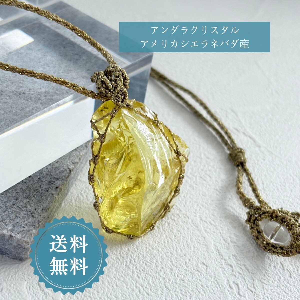 ペンダントトップ 天然石 大きめ 金属アレルギー対応 大人かわいい アンダラクリスタル マクラメ 黄色 ソラリス 30605