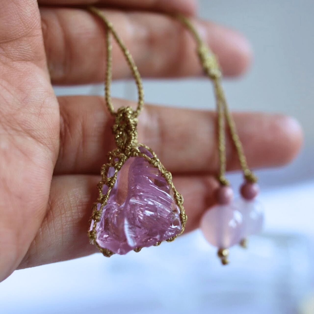 ペンダントトップ ネックレス 天然石 大きめ 金属アレルギー マクラメ 大人かわいい アンダラクリスタル ピンク 30801