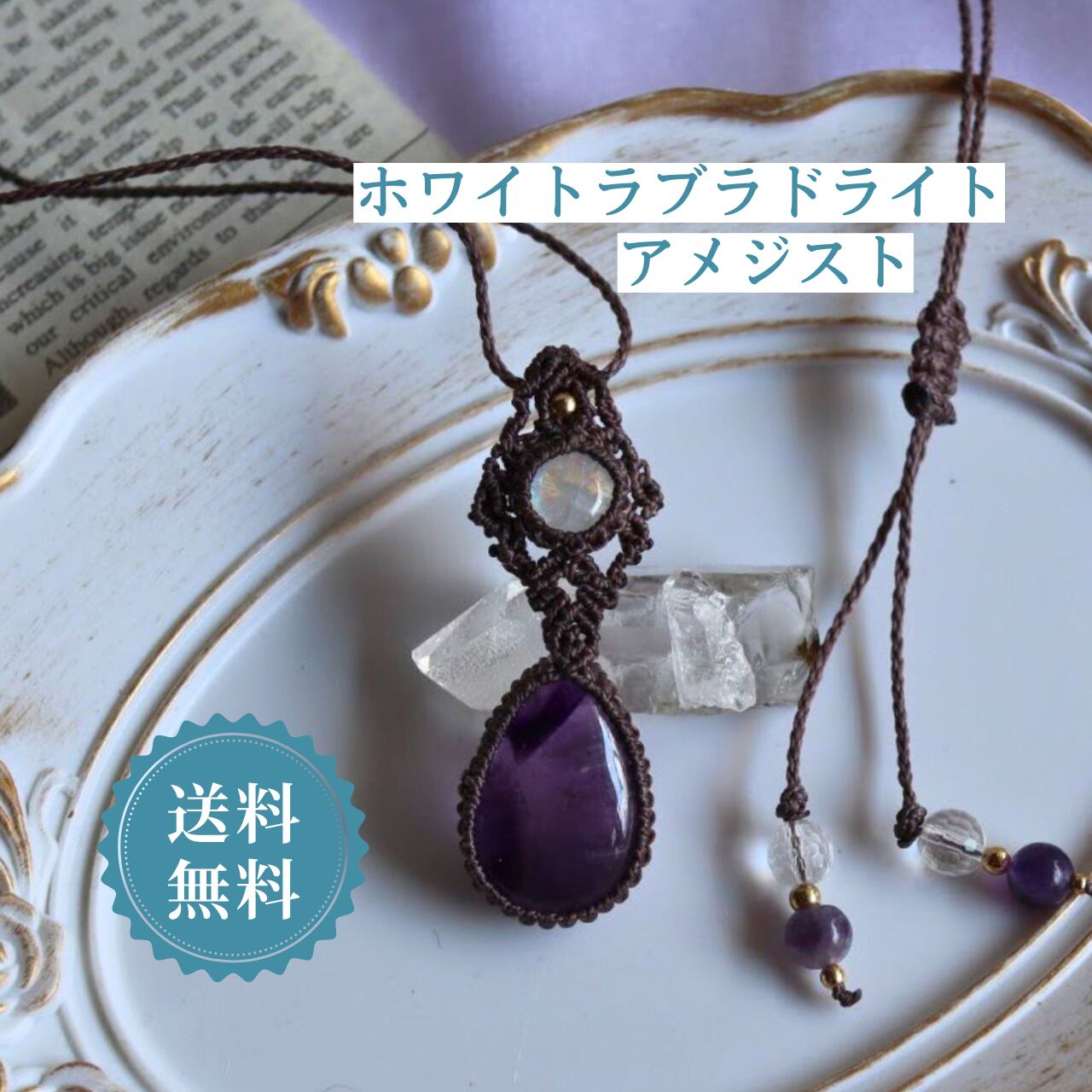 ペンダントトップ ネックレス 天然石 大きめ 金属アレルギー マクラメ 大人かわいい ホワイトラブラドライト アメジスト 31912 大人かわいい プレゼント クリスマス バレンタイン