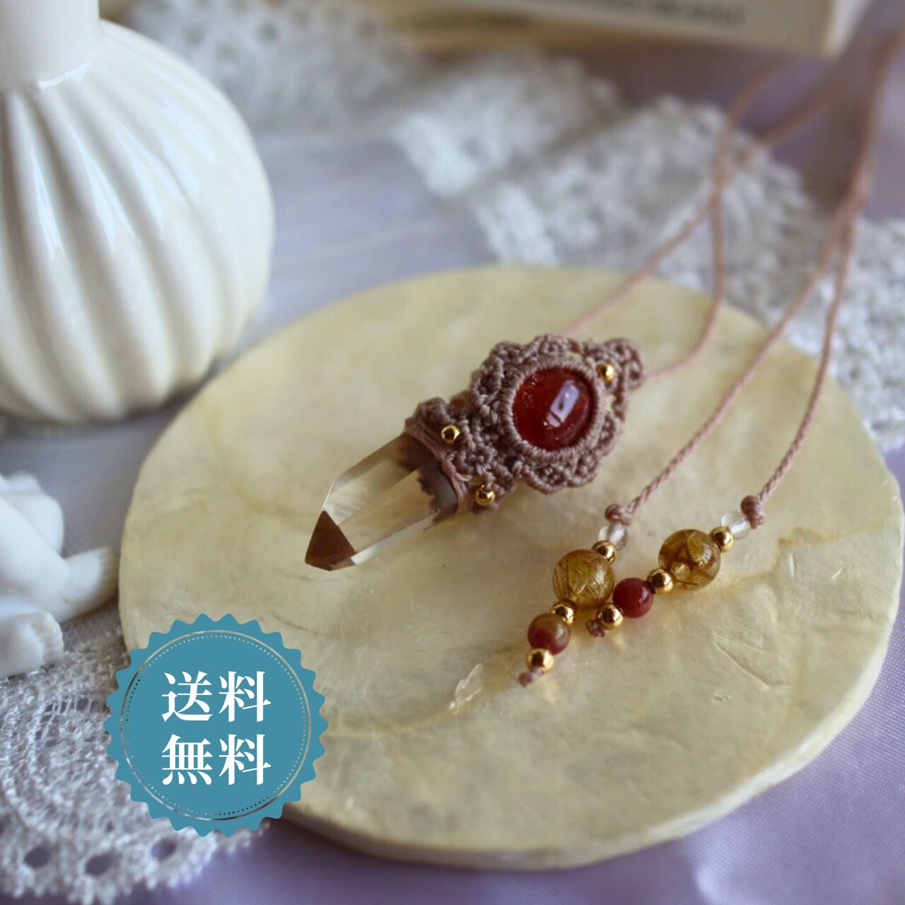 ペンダントトップ ネックレス 天然石 大きめ 金属アレルギー対応 マクラメ シトリンポイント サンストーン 311001 大人かわいい クリスマス プレゼント