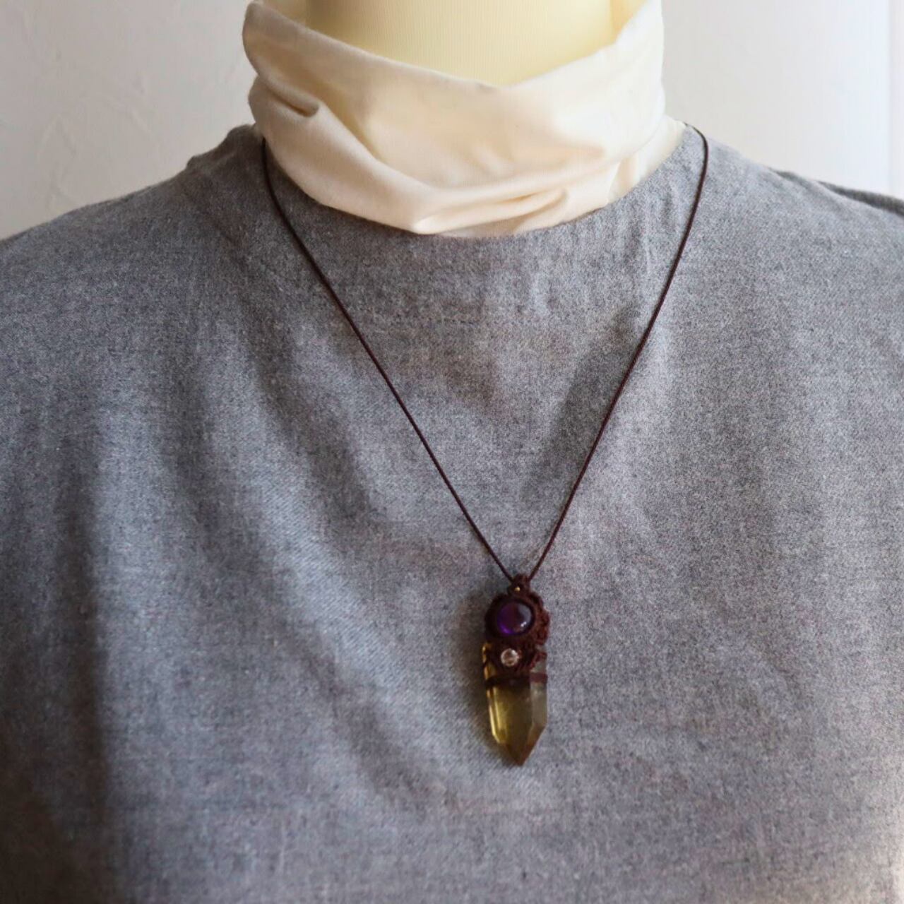 ペンダントトップ ネックレス 天然石 大きめ 金属アレルギー対応 マクラメ シトリンポイント アメジスト 311002 大人かわいい クリスマス プレゼント