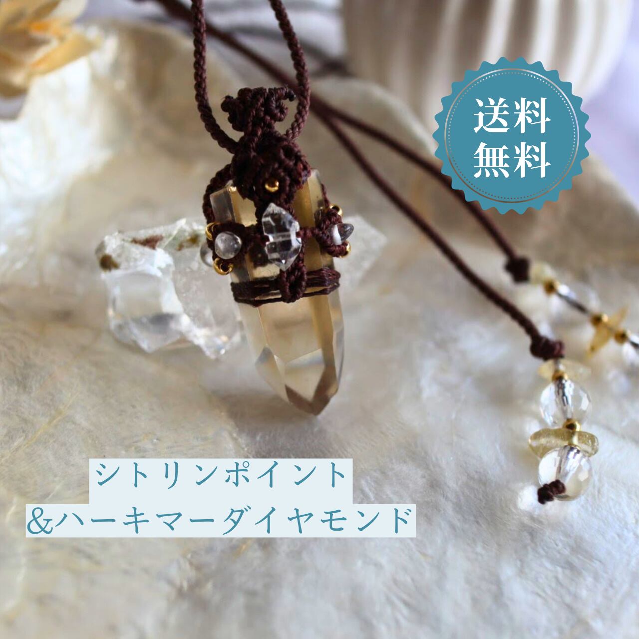 ペンダントトップ ネックレス 天然石 大きめ 金属アレルギー対応 マクラメ シトリンポイント ハーキマーダイヤモンド 311004 大人かわいい クリスマス プレゼント