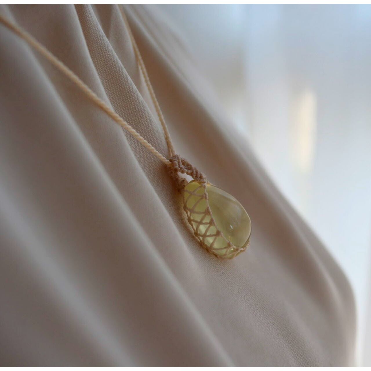 ペンダントトップ ネックレス 天然石 大きめ 金属アレルギー対応 マクラメ レモンクォーツ