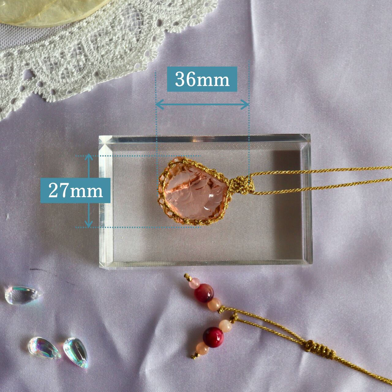 ペンダントトップ ネックレス 天然石 金属アレルギー対応 マクラメ アンダラクリスタル デザートローズ 404002 大人かわいい 天然石 ピンク ヒーリング レムリア
