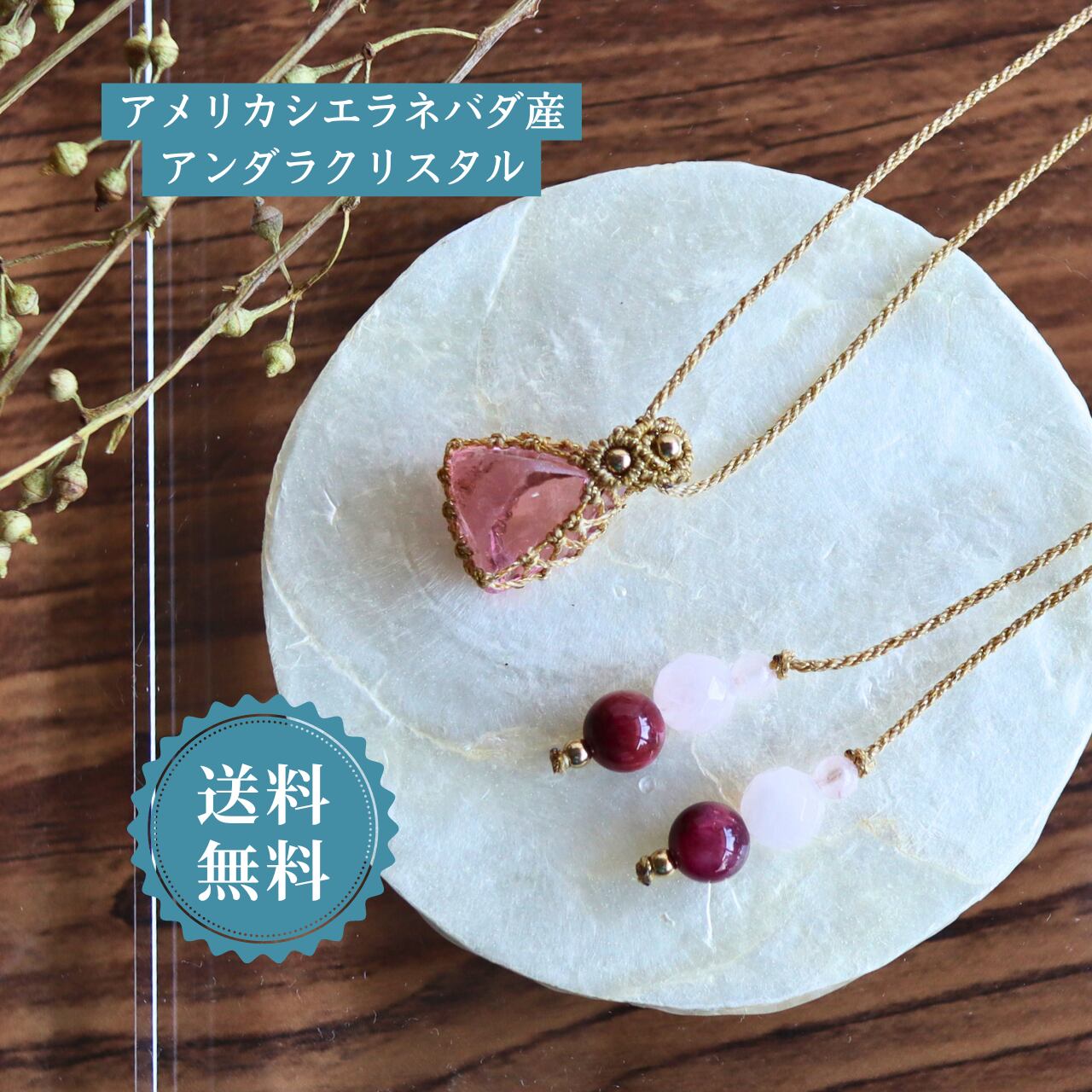 ペンダントトップ ネックレス 天然石 アンダラクリスタル 金属アレルギー対応 マクラメ編み ローズゴールド 大人可愛い プレゼント ピンク gold紐 400805 クール 癒し レムリア