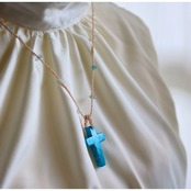 このアイテムは、12月の誕生石であるターコイズと十字架の組み合わせで、