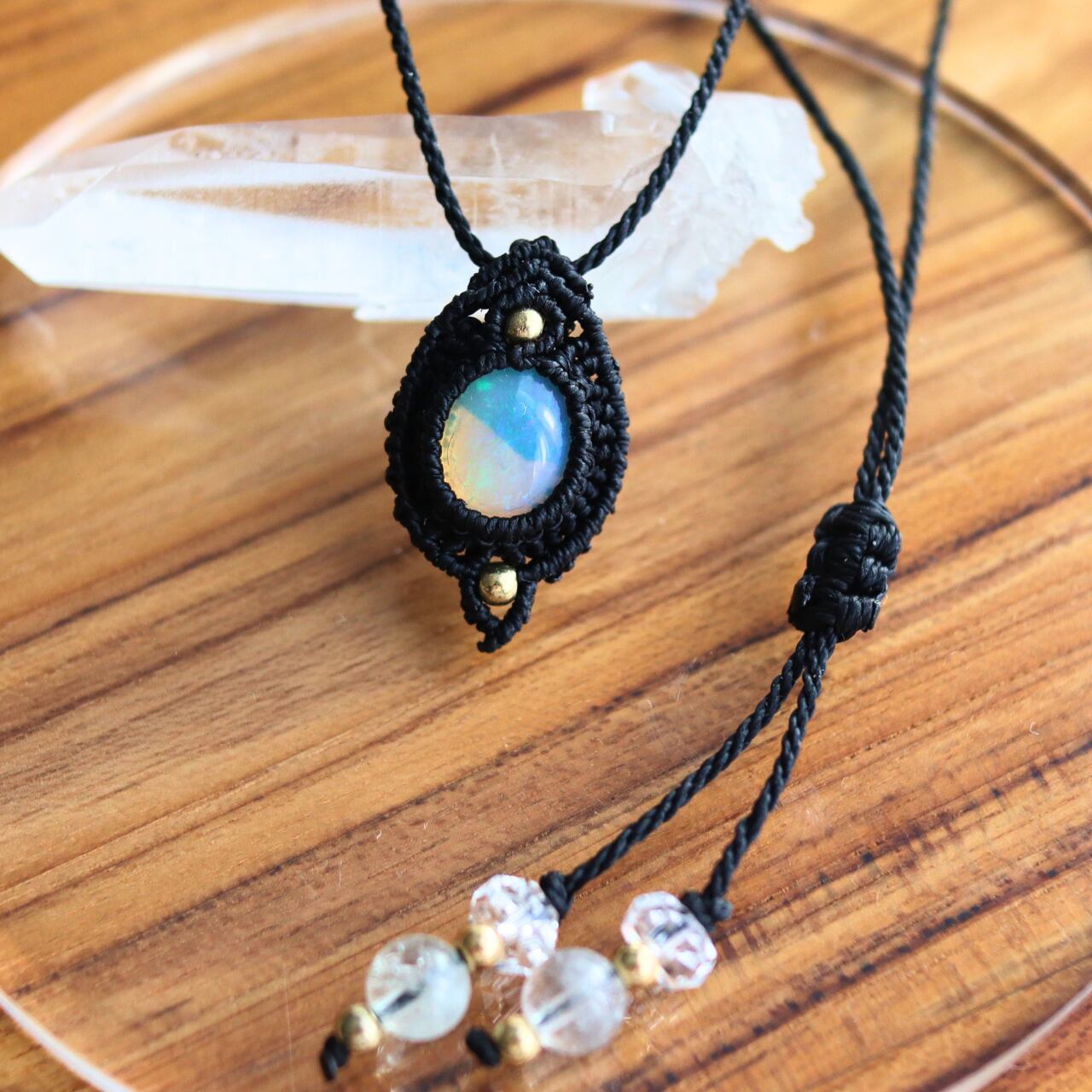 大人かわいいオパールのマクラメ編みペンダントトップが